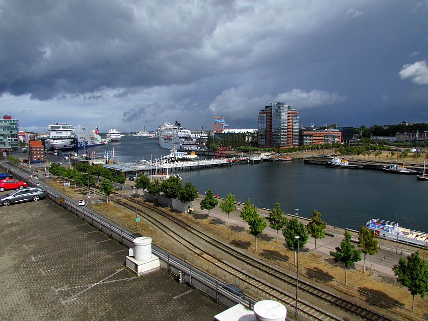 Wie zweigeteilt empfindet man das Wetter in der schleswig-holsteinischen Landeshauptstadt an diesem Tag. Während sich die dunkelgrauen, bedrohlich wirkenden Wolken über den weißen Schiffen so langsam zurückzuziehen,