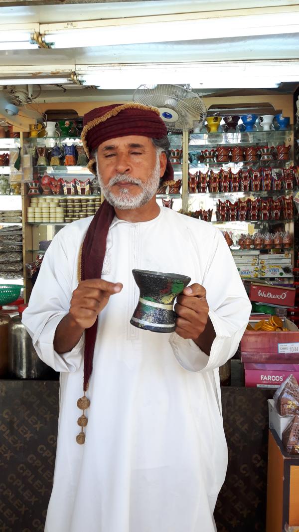 Und weiter geht es zum großen Al Hafa Fort Market, dem bekannten Weihrauchsouk. Weihrauch ist eben nicht gleich Weihrauch, denn es gibt verschiedene Qualitätsstufen – wie man es an den Preisen sieht. Der schwere Duft von Weihrauch, Sandelholz und Myrrhe liegt in der Luft und überall glimmen die kleinen Stücke in den Räucheröfen. Die Augen schließen, einatmen und entspannen – dafür ist Weihrauch ideal.
