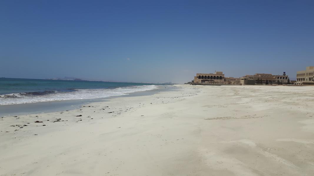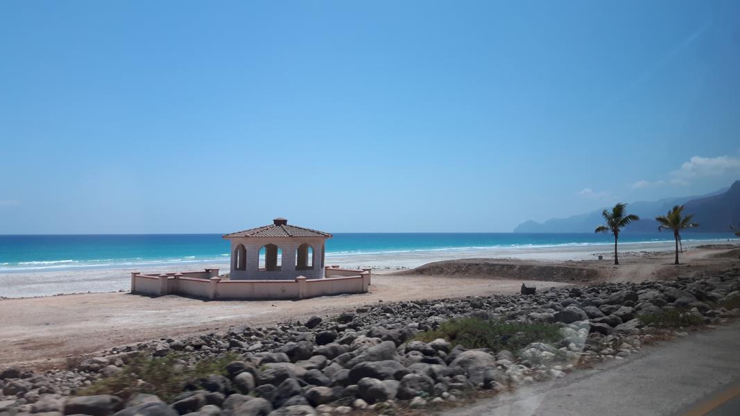 Am Strand ist nichts los, kein freier Tag für die Omanis – keine Familientreffen mit Picknick in den kleinen steinernen Strandhütten.