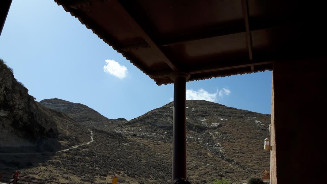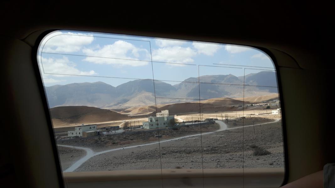 Bei der Weiterfahrt wird einem die grandiose Landschaft bewusst. Gesteinsschichten, baumlose Berghügel und tiefe Täler, in denen einige Oasen liegen – traumhafte Farben im Kontrast zum blauen Himmel.