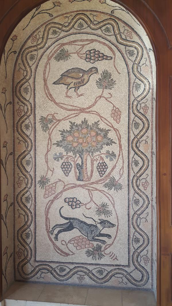In der Lobby reger Betrieb, Stimmengewirr, Kofferträger und ein netter Herr bietet uns ein Gebäckstück von einer Etagere an. Toller Service und nehmen das Angebot dankend an. Hat sehr lecker geschmeckt und einen kleinen Schluck Kaffee gab es auch noch dazu. Ich setze mich in einen gemütlichen Sessel und schauen dem Treiben zu. Ui, das stille Örtchen war auch sehenswert. Besonders gut gefallen haben mir die Mosaikarbeiten am Eingang.