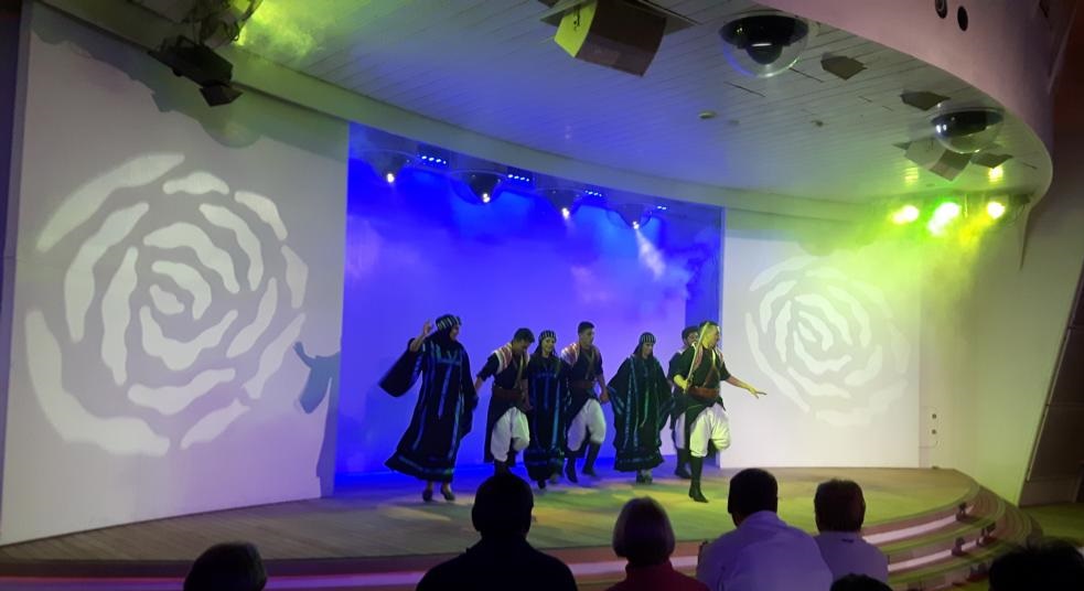 Auf der Bühne singt und tanzt die Ramtha Troupe, es ist ein Gastspiel einer einheimischen Folkloregruppe. Kurz schauen wir vorbei, ist eine toller Auftritt.