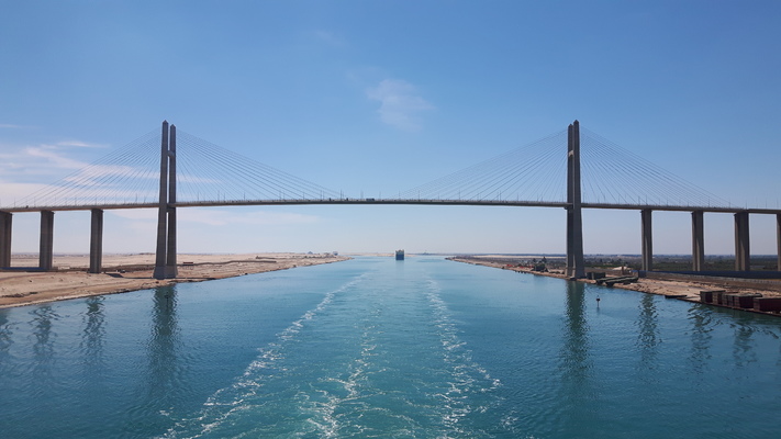 2. April, Suezkanal, leicht bewölkt, 25 Grad