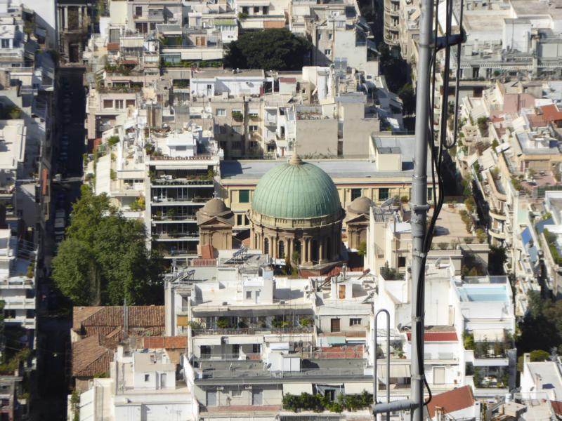 Also ganz ehrlich, für Athen braucht es schon mehr als einen Ausflug, um die wichtigsten Sehenswürdigkeiten anzuschauen. Der Anfang ist gemacht, wir haben die Ausmaße gesehen und sind überwältigt. Ich zoome mit meiner Camera die Umgebung ab und entdecke von hier oben aus auch das alte Olympia-Stadtion und eine große Kirche inmitten des Häusermeeres.