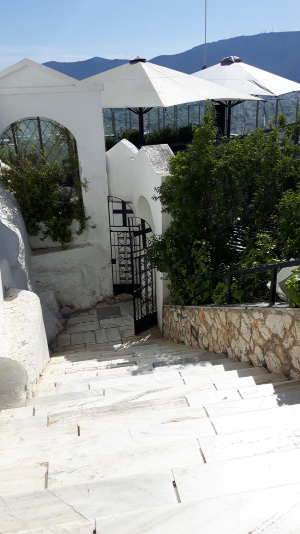 Nach kurzer Zeit sind wir oben angelangt. Es gibt die Sage, dass Athene den Berg nach Athen gebracht hat, um einen Schutzwall um die Akropolis zu errichten und sie ließ ihn versehentlich fallen. Schnell noch das stille Örtchen aufsuchen und dann steigen wir die letzten Stufen zur Plattform auf.