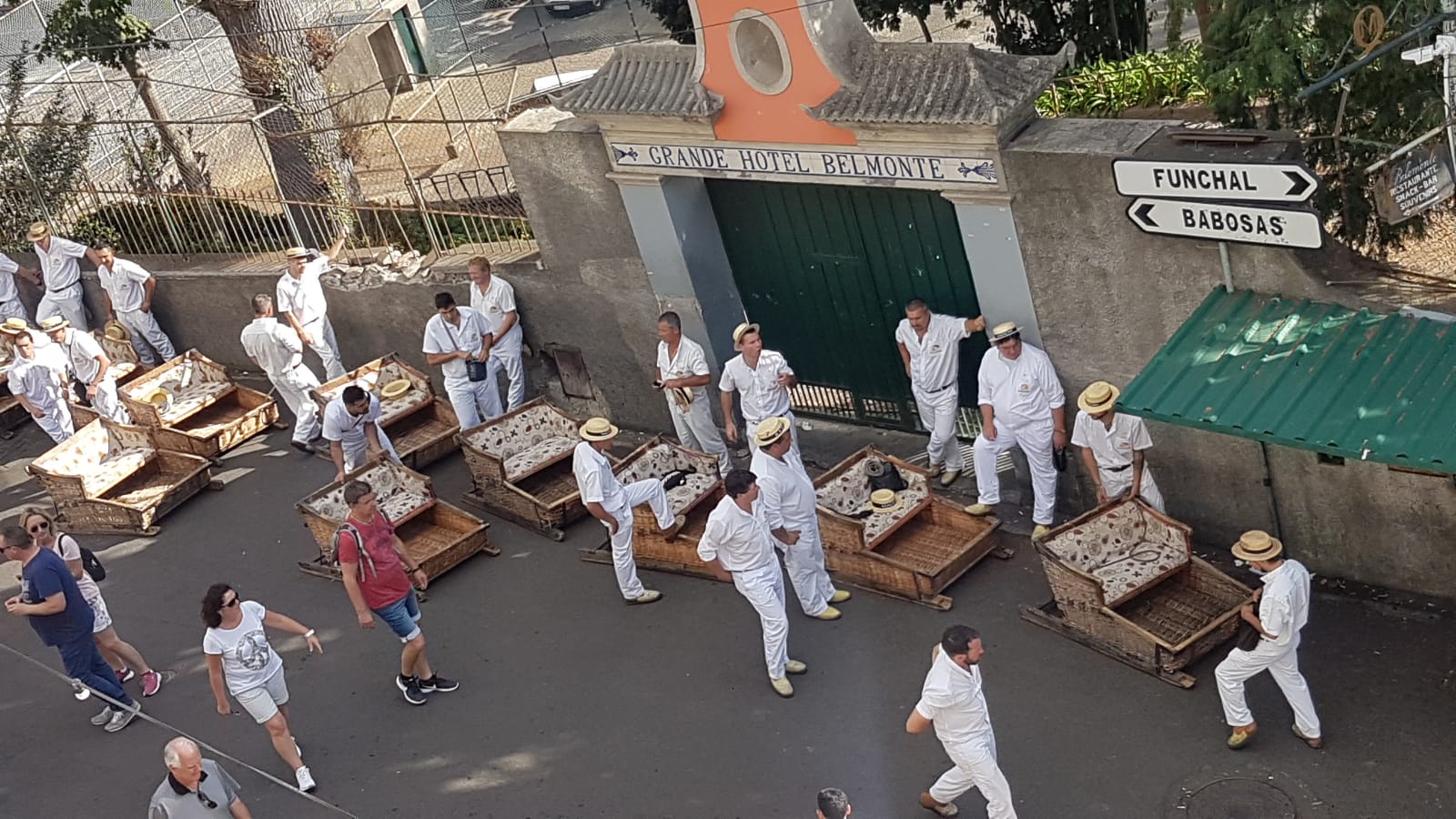 Den Tipp, so gut er auch war, mussten wir jedoch nicht nutzen, da wir direkt zur Kasse durchgehen konnten. Mit 16€ pro Person waren wir für den Rundtrip also dabei ( Einzelfahrt 11€, es gibt aber auch Kombitickets inkl. Botanischen Garten ) und bestiegen die nächste Gondel. Mit einem weiteren Pärchen von der Nova ging es dann bergauf und wir genossen den wunderbaren Ausblick auf die Stadt und unser Schiff. Oben angekommen, schlenderten wir Richtung der Kapelle "Nossa Senhora do Monte" und kämpften uns die Stufen hinauf. Nach dem Besuch der Kapelle und dem Schießen einiger Bilder beobachteten wir dann noch eine Zeitlang das Treiben bei den Korbschlitten, welche von hier den Monte wieder hinunterrauschten. Das ganze aber nur mit zwei Bremsern hinten auf dem Schlitten und nach Zahlung der entsprechenden Gebühren