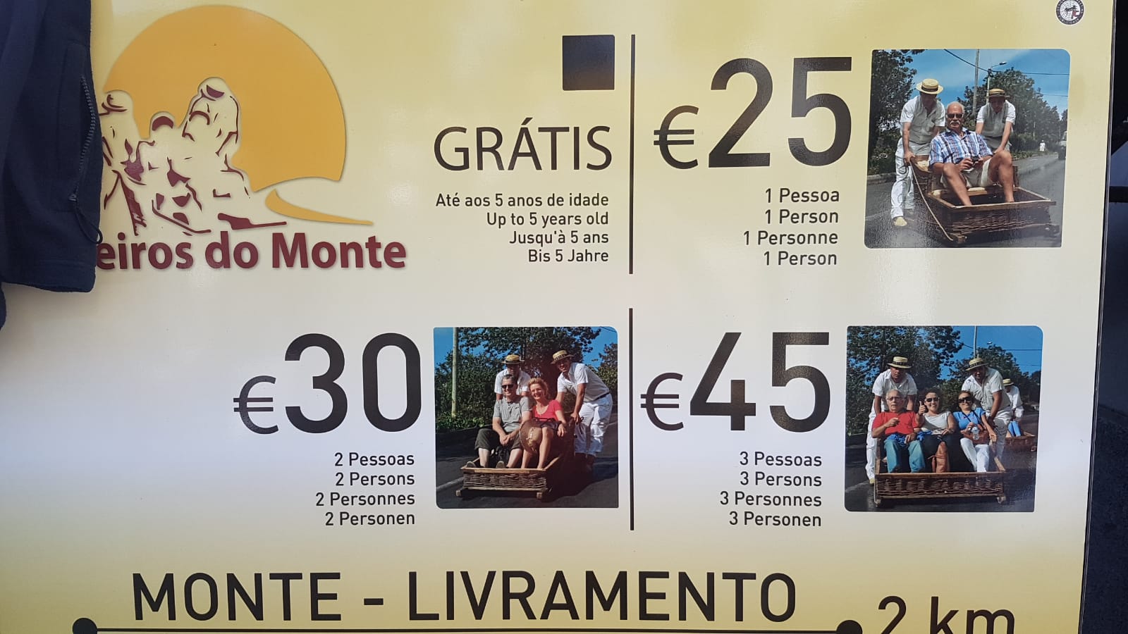 ( 1 Person 25€, 2 Personen 30€, 3 Personen 45€ ). Persönlich finde ich den Preis schon sehr happig, zumal die gefahrene Strecke lediglich 2 Kilometer lang ist und nicht wie einige vermuten, wieder ins Tal führt.