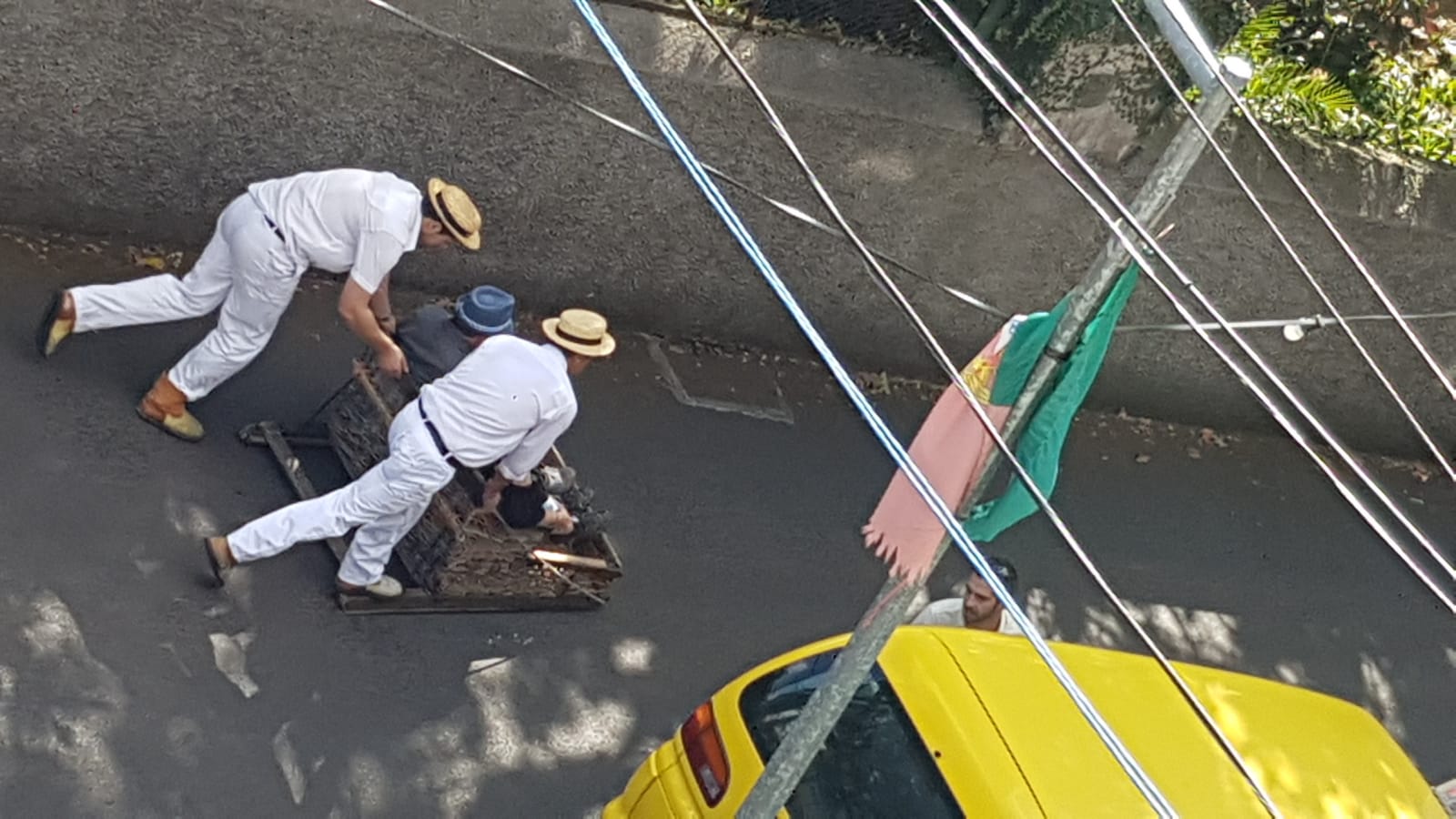 Den Tipp, so gut er auch war, mussten wir jedoch nicht nutzen, da wir direkt zur Kasse durchgehen konnten. Mit 16€ pro Person waren wir für den Rundtrip also dabei ( Einzelfahrt 11€, es gibt aber auch Kombitickets inkl. Botanischen Garten ) und bestiegen die nächste Gondel. Mit einem weiteren Pärchen von der Nova ging es dann bergauf und wir genossen den wunderbaren Ausblick auf die Stadt und unser Schiff. Oben angekommen, schlenderten wir Richtung der Kapelle "Nossa Senhora do Monte" und kämpften uns die Stufen hinauf. Nach dem Besuch der Kapelle und dem Schießen einiger Bilder beobachteten wir dann noch eine Zeitlang das Treiben bei den Korbschlitten, welche von hier den Monte wieder hinunterrauschten. Das ganze aber nur mit zwei Bremsern hinten auf dem Schlitten und nach Zahlung der entsprechenden Gebühren