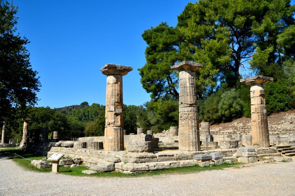 Das Olympia der Antike hat nichts mit dem heutigen Städtchen Olympia zu tun. In der Antike gab es keine Ortschaft mit dieser Bezeichnung; es existierte damals an diesem Flecken eine Kultstätte. Ein Heiligtum incl. geistigem Zentrum. Entstanden ist es nach einer Idee des Königs einer der zahlreichen, untereinander spinnefeinden Stadtstaaten, ein Treffen mit Sportwettkämpfen zu Ehren von Zeus zu veranstalten. In dieser Zeit mussten die Waffen ruhen. So kam es und im Jahre 776 v. Chr. fanden die ersten Olympischen Spiele statt. Sie wurden alle vier Jahre veranstaltet; selbst in der Zeit der römischen Besetzung wurde nicht auf sie verzichtet. Bis im Jahre 393 n. Chr. der römische Kaiser Theodosius die Spiele als Widerspruch zu der von ihm eingeführten Staatsreligion Christentum und als heidnischen Kult verbot. Die vermeintliche Götzengegend verfiel; ein Erdbeben machte im 6. Jahrhundert der einstigen Pracht das Garaus. Die Natur übernahm das Zepter und Ablagerungen zweier Flüsse bedeckten alles mit einer fünf Meter dicken Schlammschicht. Vergessen … bis zu den ersten Ausgrabungen im Jahre 1829 durch ein französisches Forschungsteam, die ab 1875 unter Aufsicht des Deutschen Archäologischen Instituts systematisch weitergeführt wurden.