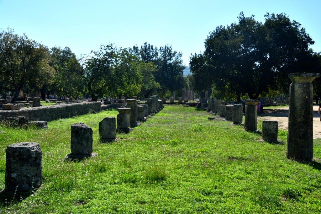 In den guten alten olympischen Zeiten stellte dieser Teilkomplex ein 120 m x 220 m großes Gebäude mit zentralem Hof und Säulenhallen dar. In ihm schwitzten die Wettkämpfer und bereiteten sich auf die Disziplinen Diskuswurf, Laufen und Speerwerfen vor.
