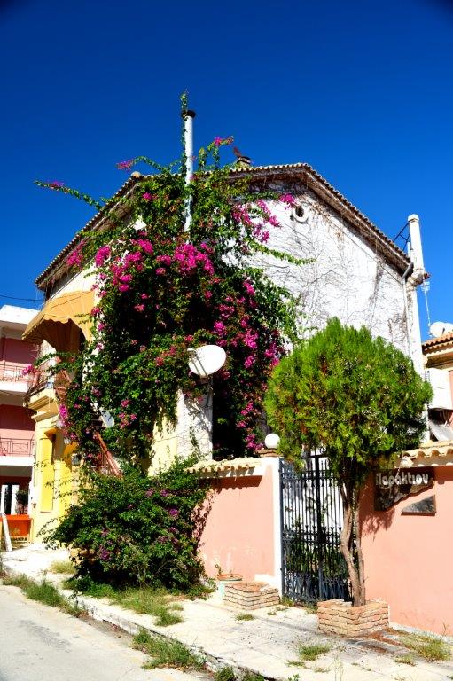 In dem Ort selbst begann das Spießrutenlaufen. Es gab zwei parallel zum Hafengebiet verlaufende Straßen. Die dem Hafen am nächsten gelegene war gefüllt. Links und rechts mit Läden, bei denen sich die Angebote konsequent wiederholten. Vor und in den Läden Menschentrauben. Ein Sprachengewirr. Grund: Als wir Richtung Olympia fuhren, hatten zwei Kreuzfahrthochhäuser in Katakolon angelegt. Die Costa Luminosa und die MSC Magnifica. Wir kämpften uns durch die Hauptstraße, erfreuten uns in Nebenstraßen an der Blumenpracht