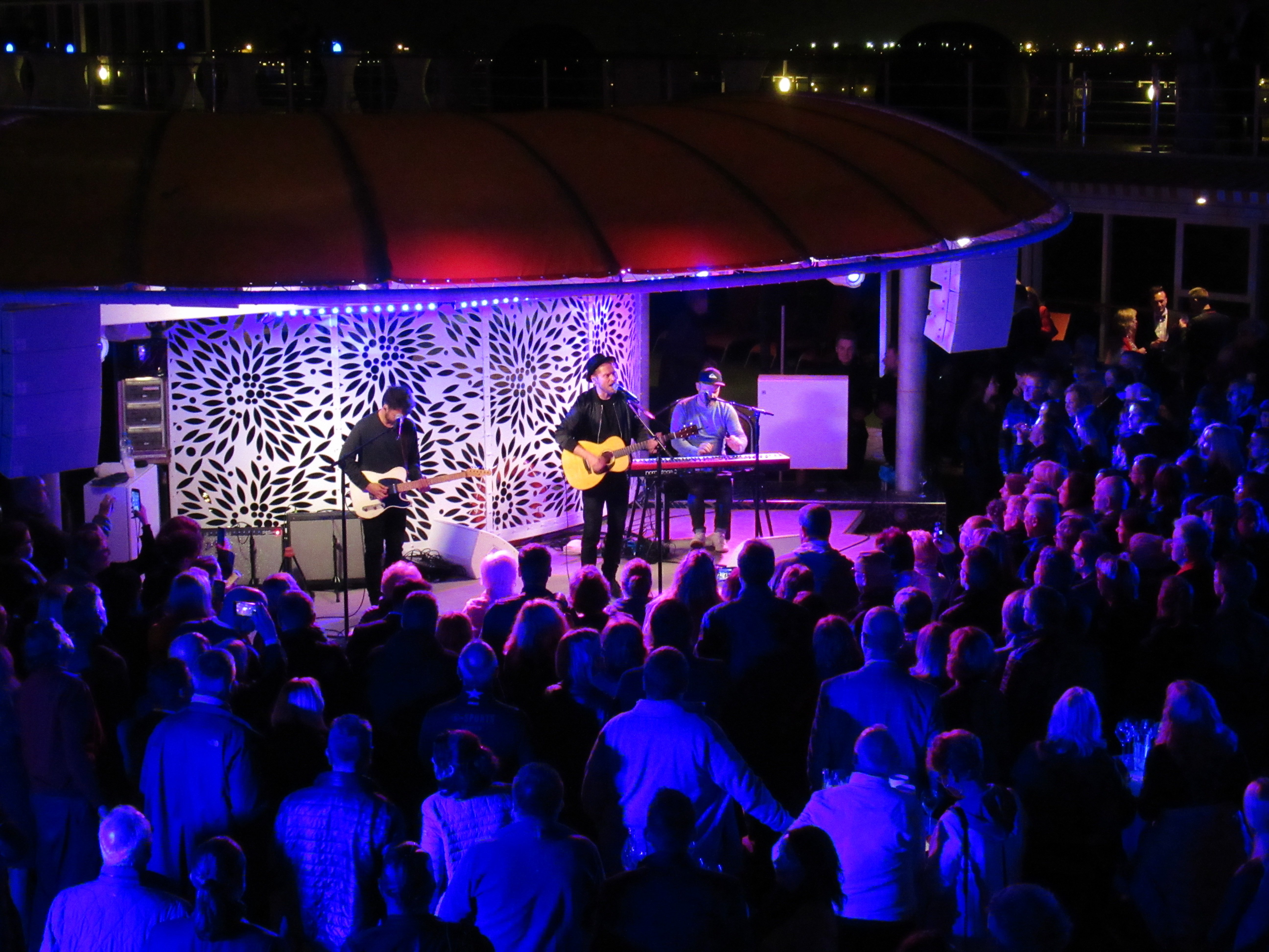 Interessant war auch zu sehen, wie viel Technik für so ein Konzert notwendig ist. Trotz der chaotischen Bedingungen, die wir auf dem Pooldeck hatten musste das ganze Zeug ja auch noch rauf und am nächsten Tag wieder runter geschafft werden