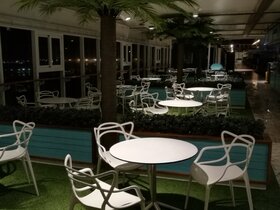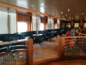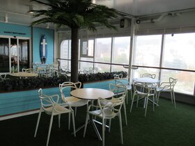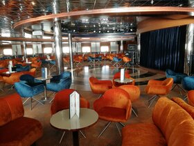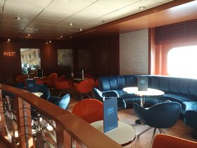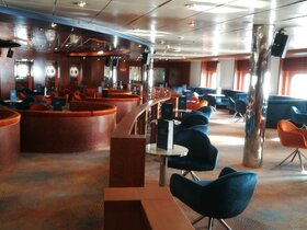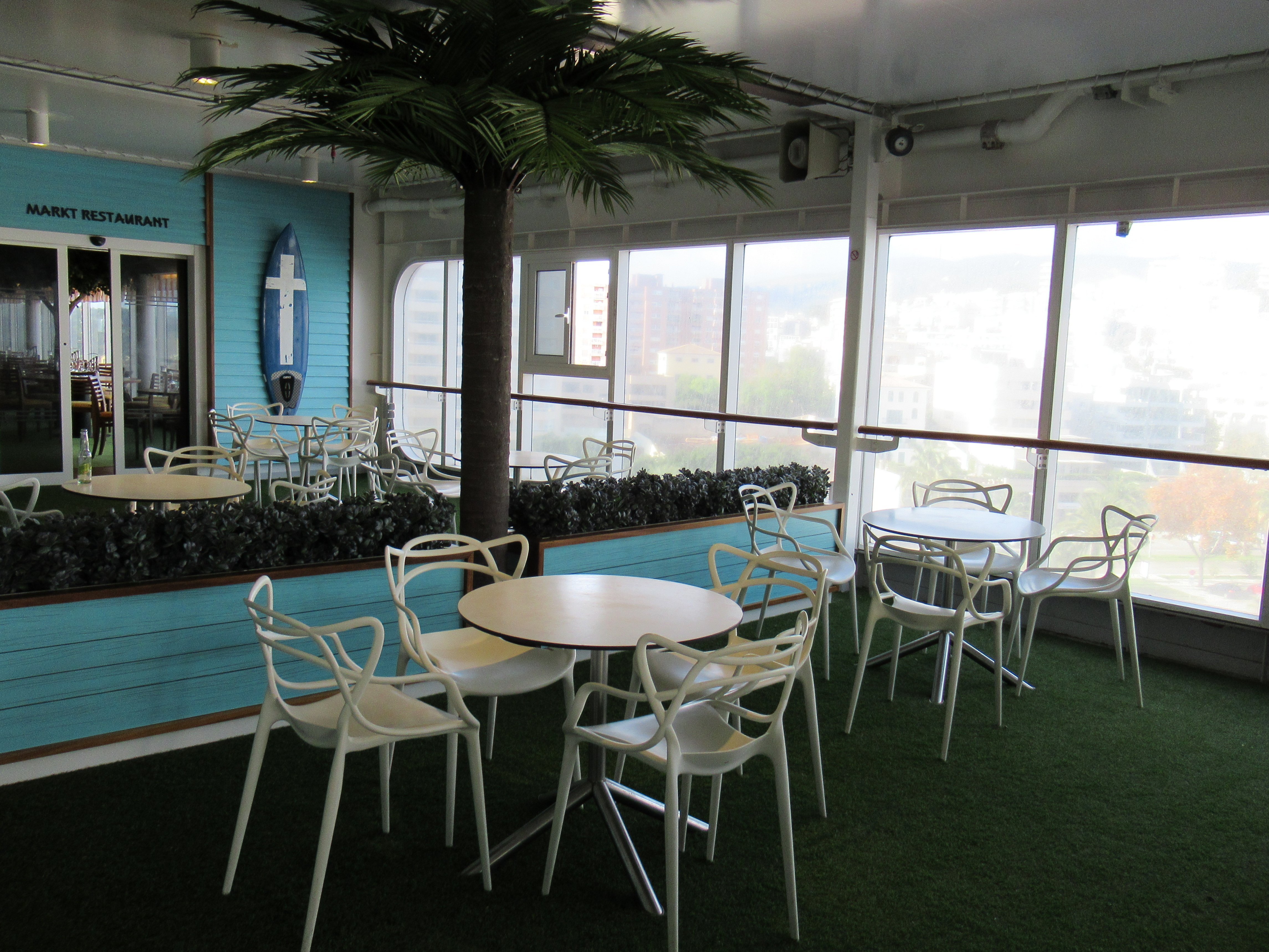 Wer jetzt eine Sternenbar erwartet wird enttäuscht. Die Bar heißt zwar AIDA Bar, ist auch groß, hat eine Bühne und es finden dort Veranstaltungen statt, an AIDA erinnert aber nicht mehr viel. D.h. doch, die ovalen Stehtische.