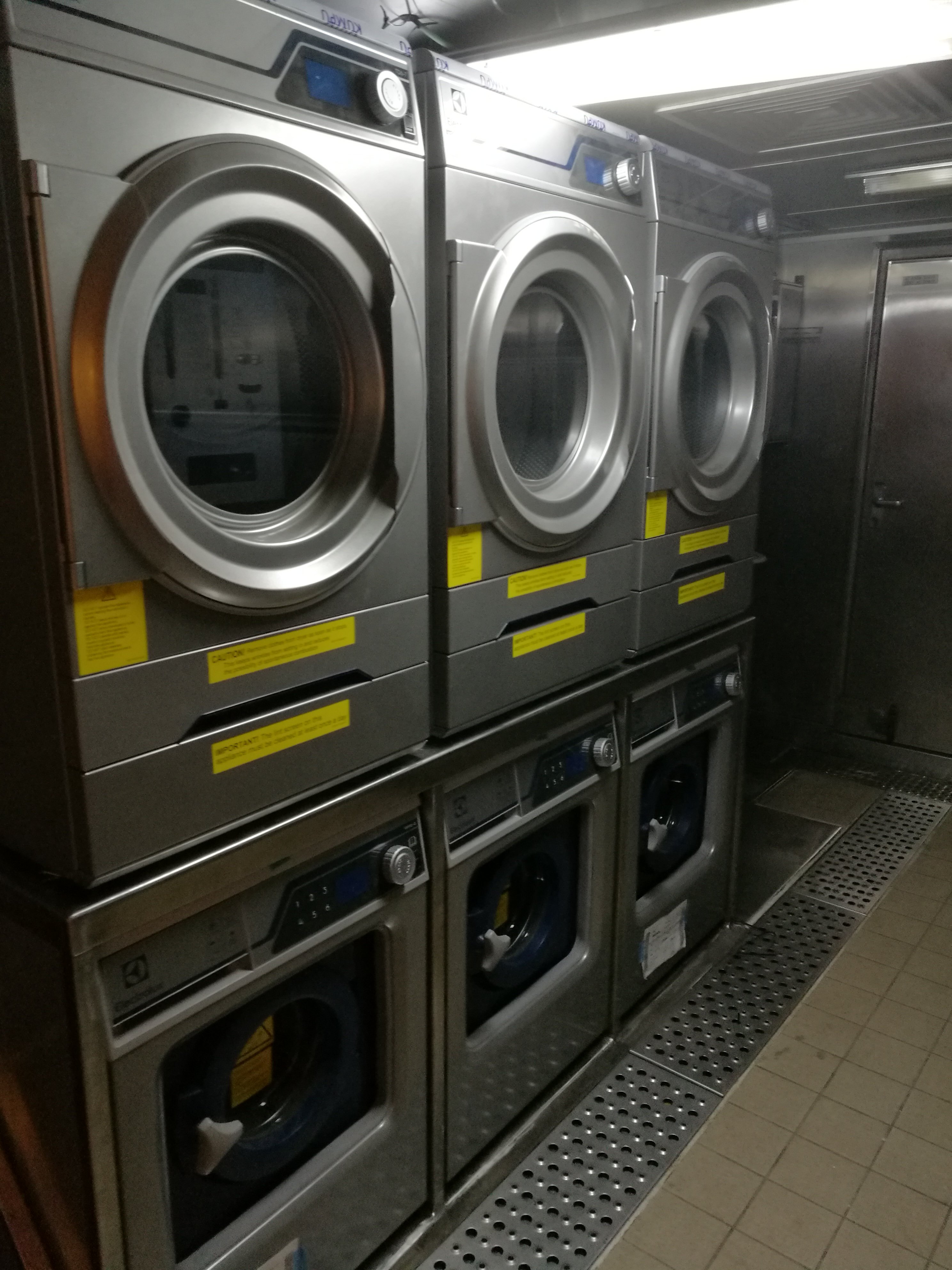 Ich arbeite mich weiter hoch in Richtung meiner Kabine und begebe mich auf die Suche nach dem Waschsalon auf Deck 9. Auf der Backbordseite gegenüber Kabine 9109 bzw. zwischen den Kabinen 9107 und 9115 werde ich fündig. Hier muss noch gearbeitet werden, aber immerhin ist er schon eingerichtet. Für eine Kurzreise fand ich den Waschsalon jetzt auch nicht ganz so wichtig.