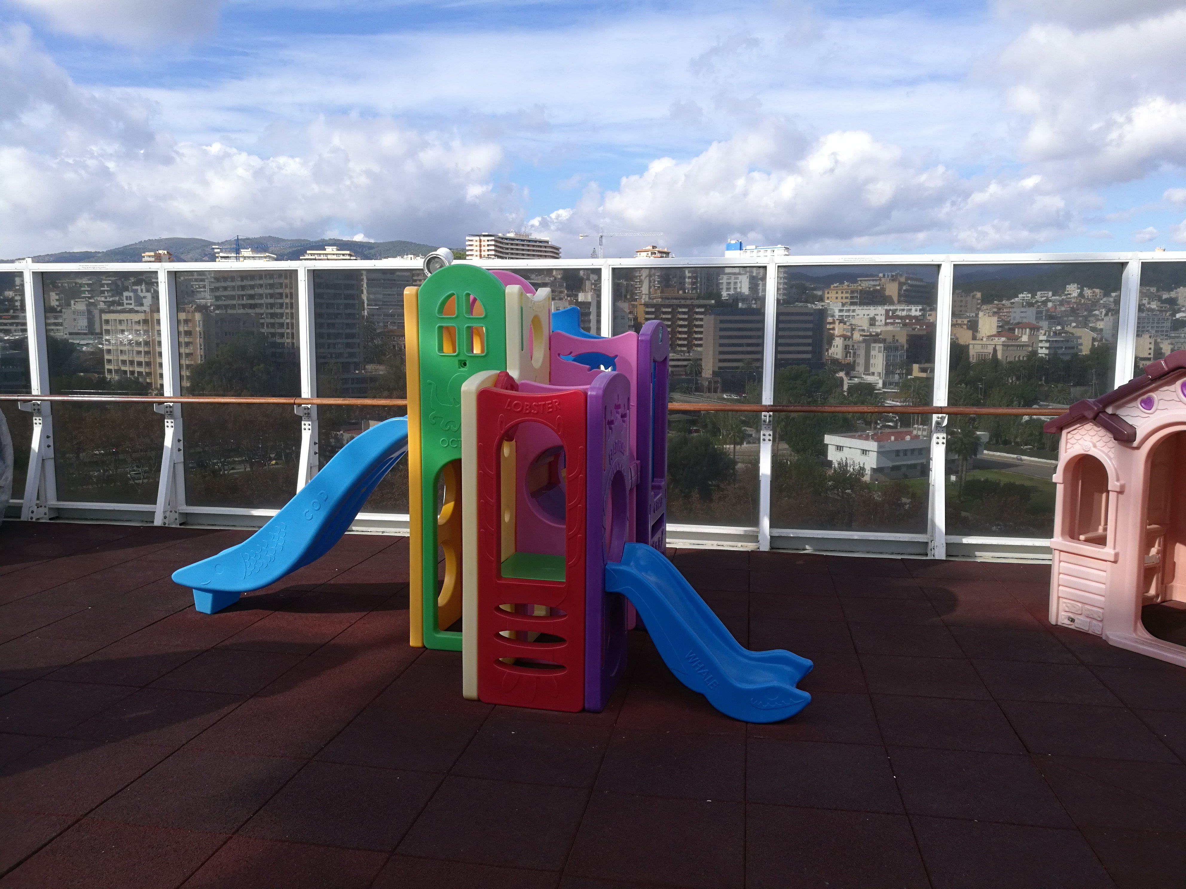 Da standen wir nun alle. Ich habe zwar die Aussicht und die Sonne genossen, aber nach fast einer halben Stunden wurde mir langweilig. Die Gangway war noch draußen. Es tat sich nichts. Das war die Gelegenheit, mir den Außenbereich des Kidsclub anzusehen. Dieser befindet sich nur wenige Schritte entfernt ebenfalls auf Deck 12.