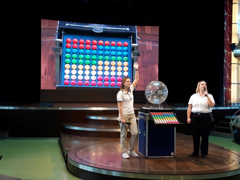 Ein wenig sitzen wir im Theatrium mit Blick auf das Meer, die Reihen füllen sich langsam, denn es lockt der Super Jackpot Bingo.