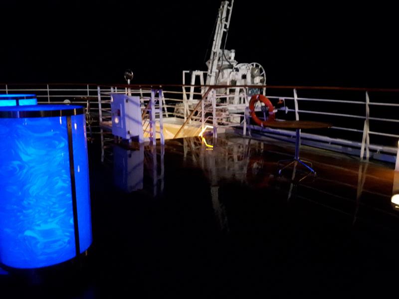 Und weil uns noch nach Frischluft ist, folgt ein Spaziergang über das Pooldeck.
