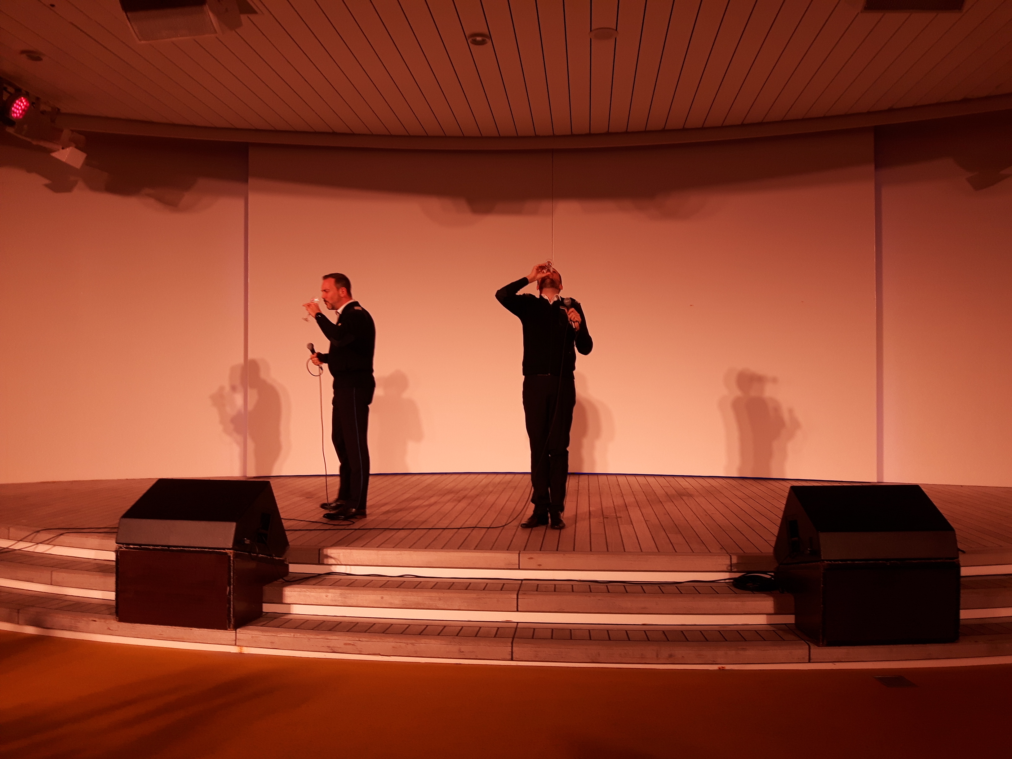 Die Sängerinnen haben Schuhe mit Absätzen an und das Gerüst für die Luftakrobatik bewegt sich ganz dezent über uns. Es läuft die Show „AIDAstars“ - immer wieder schön, die einzelnen Stars mit einem Soloauftritt zu erleben – aber auch die Artisten und Tänzer gesellen sich dazu und zeigen, was sie können.