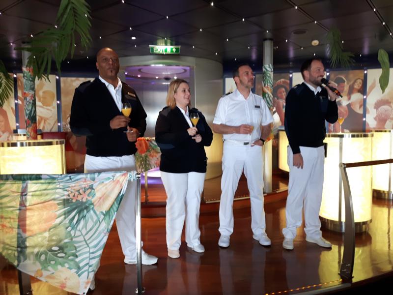 Trotz des kleinen Kreises war eine nette Begegnung und wir hatten ausreichend Zeit für Gespräche. Zum Wohle dann. Natürlich ist auch das Ende der Reise ein Gesprächsthema. Denn am 30. November, wenn wir in Palma ankommen werden, liegt die MIRA dort im Hafen - bereit zur Taufe. Ich bin auf jeden Fall gespannt, wie sie aussehen wird. Zum Glück müssen wir ja erst um 15 Uhr von Bord und so habe ich Zeit, einen Blick drauf zu werfen. Es gibt sogar Passagiere, die dann dort vor Ort einfach umsteigen, um die Jungfernfahrt mit dem neuen Mitglied der Flotte zu machen. Ja, das könnte mir auch gefallen.