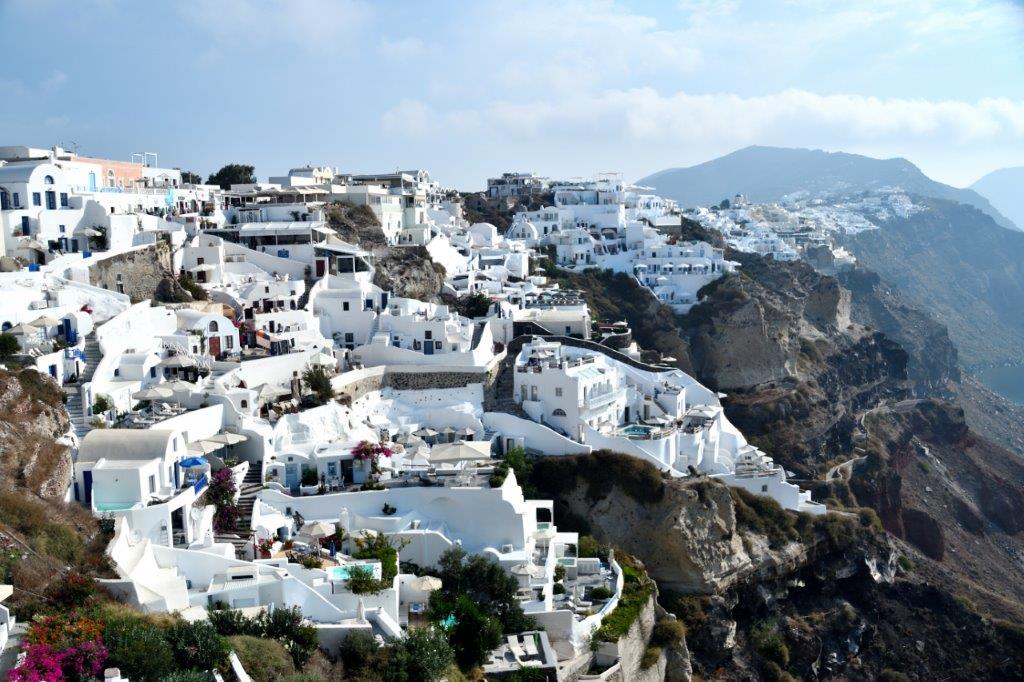 Unwiderstehliche Aussichten auf das weiße, mit Farbflecken versehene Häusergewimmel. Unter blauem Himmel. Über tiefblauem Meer. Einfach nur schööööön …