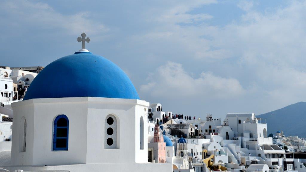 Wir liefen uns zwar nicht die Füße wund, meinten aber, die meisten der schönsten Flecken Oías besucht zu haben. Die berühmte schneeweiße Kirche mit den blauen Kuppeln.