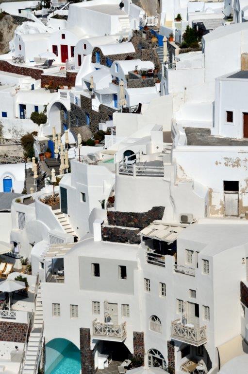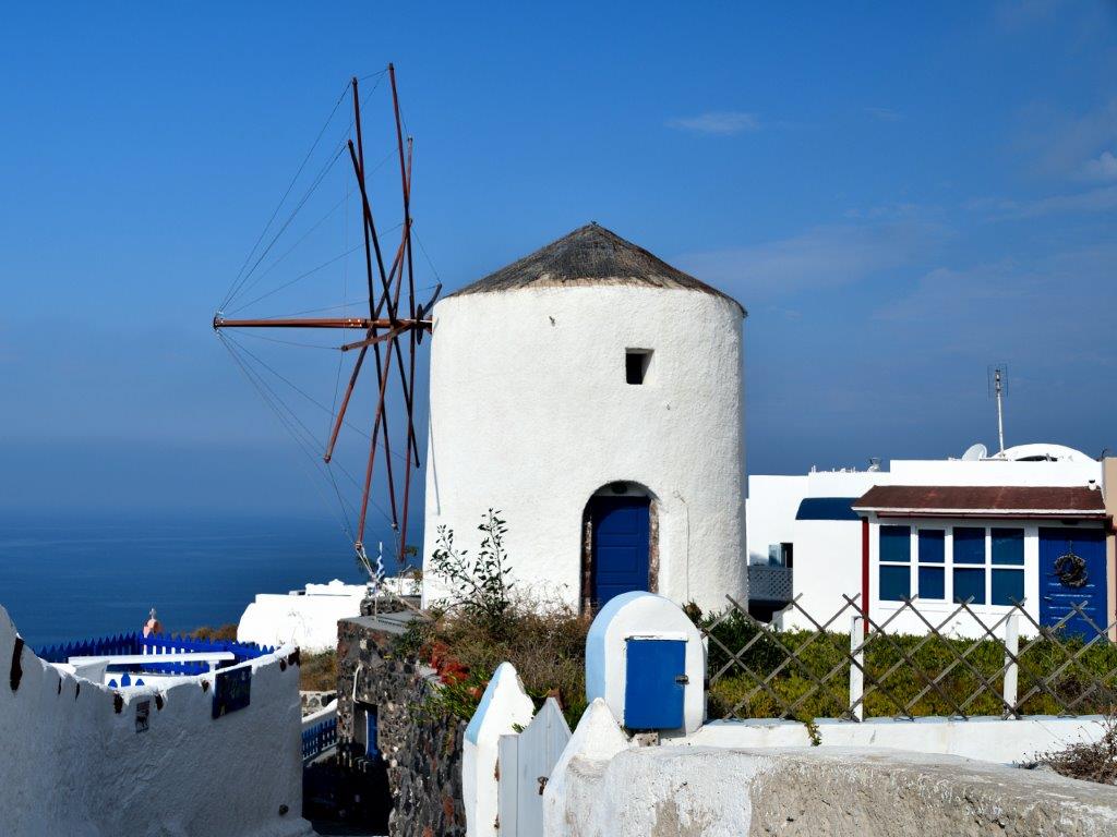 Hier gab sie uns eine kurze Einweisung, Tipps zu Sehenswürdigkeiten sowie Tavernen und dann entließ sie uns zu einer zweistündigen Eroberung des malerischen Oía. Ein traumhafter Kykladenort. Weiß überwog bei den Bauten mit Kontrastfarben bei Fenstern und Türen.