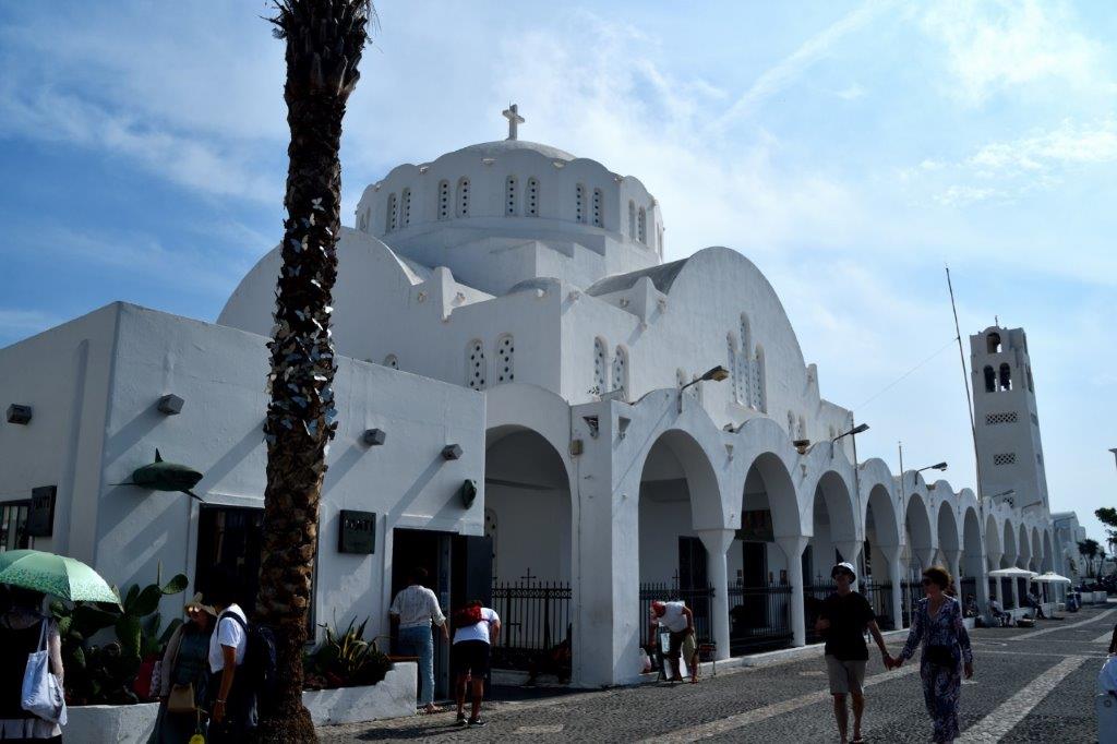 Die Fahrt nach Thira verging wie im Fluge und schon stand unser Bus am Rande der Altstadt. Raus aus dem Bus und mit der Reiseleiterin im inzwischen gewohnten Gänsemarsch zur orthodoxen Metropolis Kathedrale.