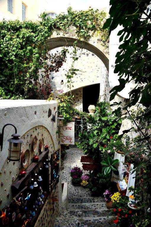 Wir machten uns auf. Durch enge Gassen. Vorbei an aneinandergereihten Geschäften mit unterschiedlichsten Angeboten: Schmuck, Leder, Kleidung. Schmuck, Leder, Kleidung, Schmuck, … Nicht unbedingt mein Interesse. Aber ich machte die Reise nicht alleine … und ich musste da durch. Immer weiter … Irgendwie fehlte das Flair von Oía. Es gab zwar einige schöne Ecken,