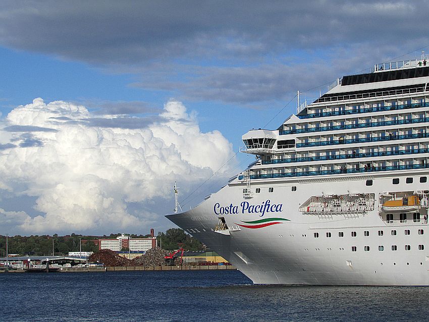 Wohlklingend und volltönend ist der tiefe Typhonton sicher weithin in Kiel hörbar, als "Costa Pacifica" nach und nach immer mehr Fahrt aufnimmt und der Kapitän sie auf Kurs in Richtung offene Ostsee schickt.