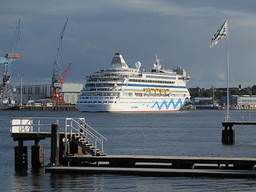 Man könnte wirklich meinen, die einem immer ein Lächeln ins Gesicht zaubernden Kussmundschiffe der AIDA-Flotte sind in den deutschen Hafenstädten die heimlichen "Stars", die "Lieblinge" der "Sehleute" am Ufer. Immer, wenn eines der Schiffe mit den wachen Augen und dem leuchtendroten Kussmund sich anschickt, auf Reisen zu gehen, versammeln sich besonders viele Menschen am Ufer, um sie zu verabschieden. So auch an diesem Sommerabend in Kiel.