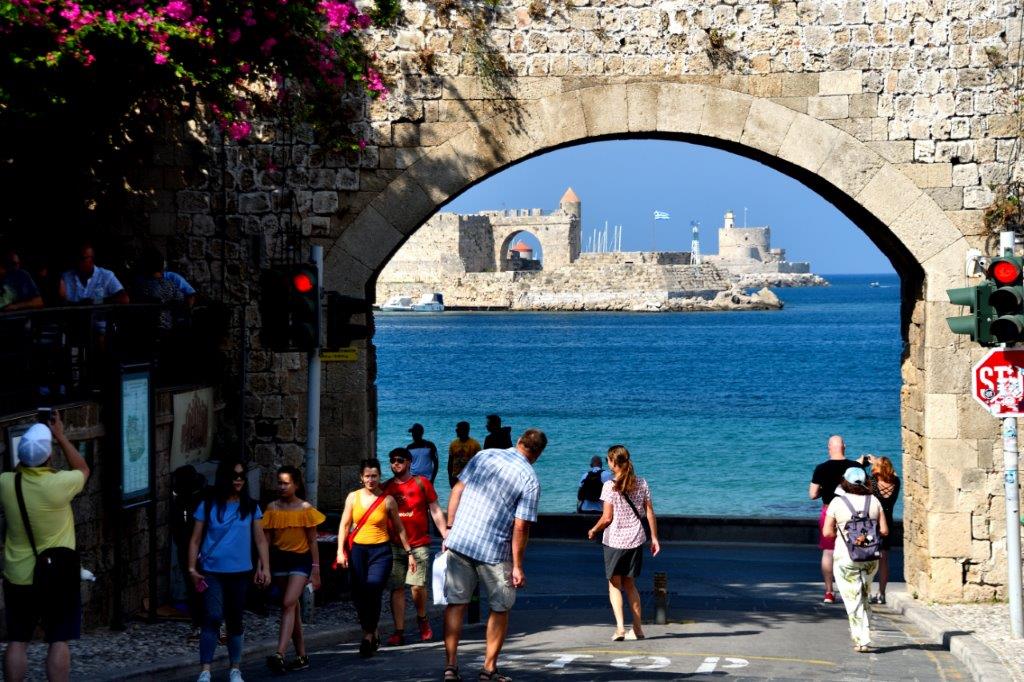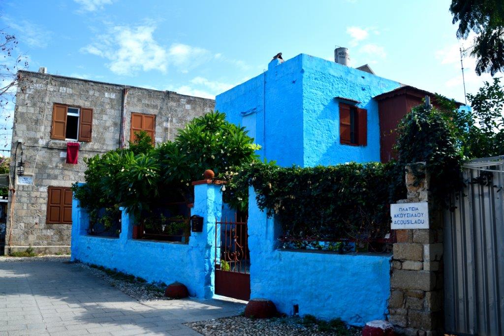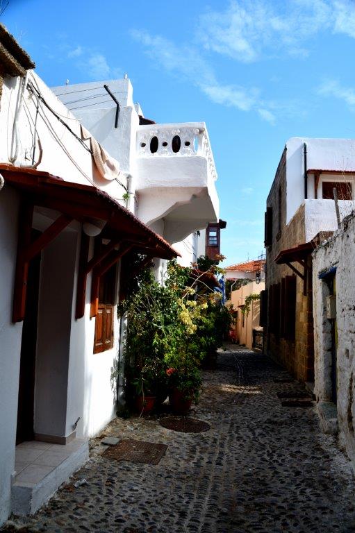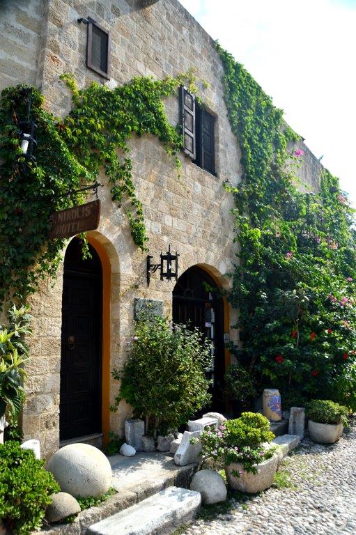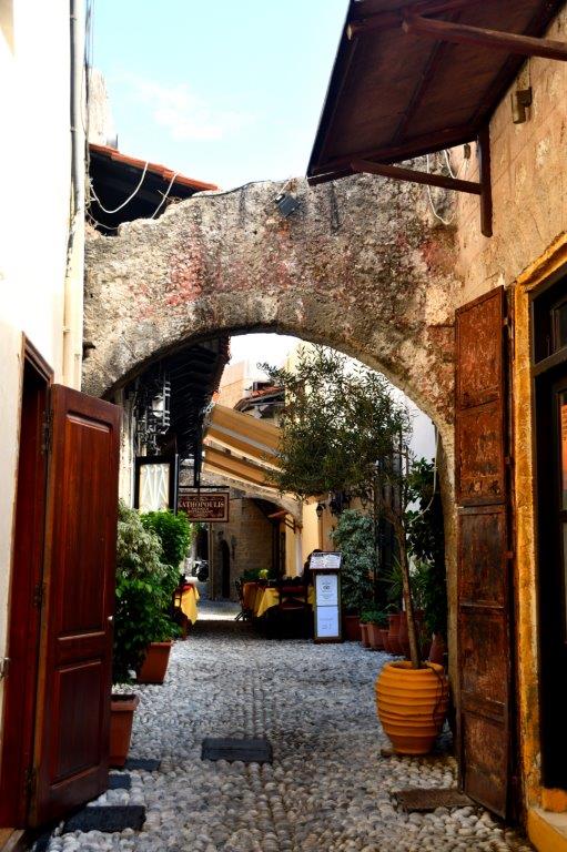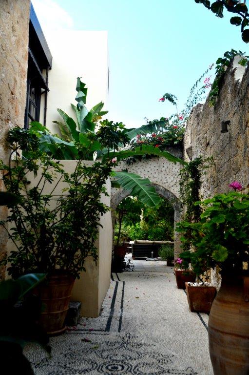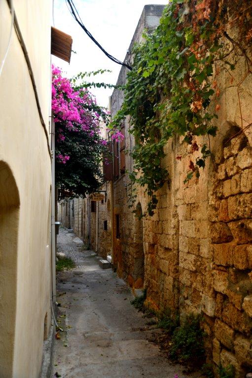 Oder waren Aktionskünstler am Werk … Lassen wir das. Nicht nur wir stellten fest, dass die gesamte Altstadt von Rhodos zu Recht vor einigen Jahrzehnten als Weltkulturerbe deklariert wurde. Liebevoll mit Topfpflanzen geschmückte Häuser und Gassen. Kleine, auf die Bewohner abgestellte Gärtchen. Hin und wieder Restaurants unter ausladenden Bäumen. Bougainvillahecken. Ineinander verwobene Bäume und Sträucher. Eine reine Augenweide!