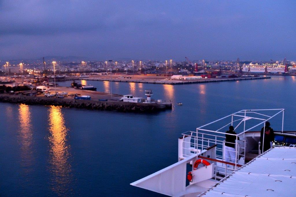 Die Rückfahrt nach Heraklion ließ sich nicht aufschieben. Es war ein Auf und Ab durch insgesamt grüne Natur. Bis wir Heraklion erreichten, durch diese eher triste Großstadt fuhren und den Hafen erreichten. Nach einer herzlichen Verabschiedung von Kerstin und einer Shuttle-Fahrt durch das Hafengelände enterten wir unsere AIDAcara. Ausruhen war unser Ziel. Am liebsten in der Sonne auf Deck 6. Das hatten sich viele vor uns vorgenommen. Sämtliche Stühle waren besetzt – eine nicht unerhebliche Anzahl von (hoffentlich gewaschenen) Füßen. Eine neue Unart … Um Stress und Unzufriedenheit zu vermeiden, sprachen wir die Fußableger ausnahmsweise nicht an und verzogen uns auf Deck 10, wo wir unsere Plätze in einer windstillen Ecke fanden. Das ging auch …