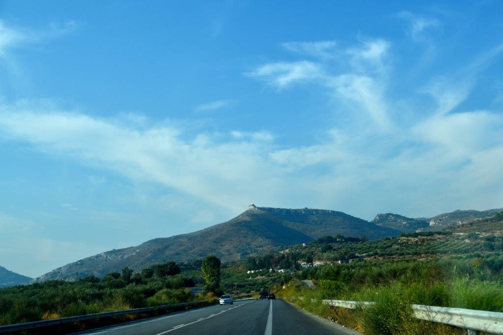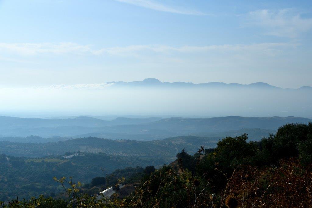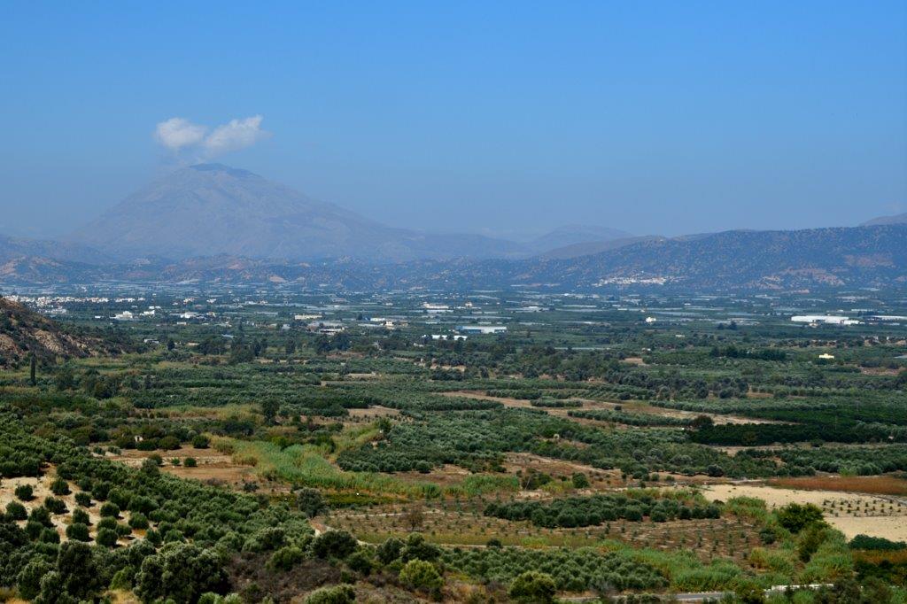 Die andere Seite der von 250 m bis zum Mittelmeer abfallenden Messara-Ebene wird vom bis zu 1.231 m hohen Asteroussia-Gebirge begrenzt. Die Sicht auf die Höhen wurde von einem Nebelvorhang beeinträchtigt – das sah auch nicht schlecht aus …