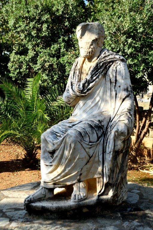 Am Rande der Ausgrabungsfläche sahen wir ein auf der Vorderseite offenes Gebäude, in dem hinter Gittern teils kopflose Marmorstatuen aus der römischen Epoche standen. Der da