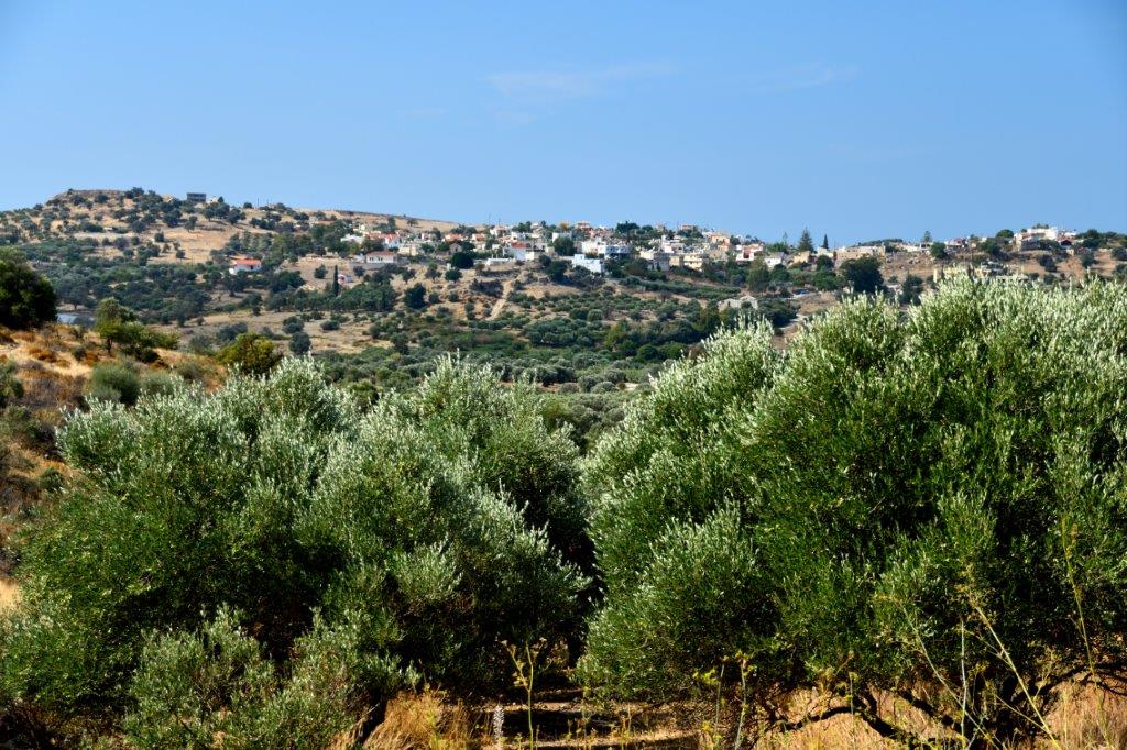 Kerstin stellte klar, dass der Hauptwirtschaftszweig Kretas nicht der Tourismus sondern die Landwirtschaft war. Von der Ernährung her ist Kreta autark. Hauptfaktor ist der subventionierte Olivenanbau. Wir merkten es – auf beiden Seiten der Straße tauchten immer wieder Olivenplantagen auf. Die älteren, knorrigen Bäume ohne Ordnung. Sie wurden seinerzeit dorthin gesetzt, wo gerade Platz war. Jüngere Olivenbäume waren schnurgerade ausgerichtet.
