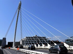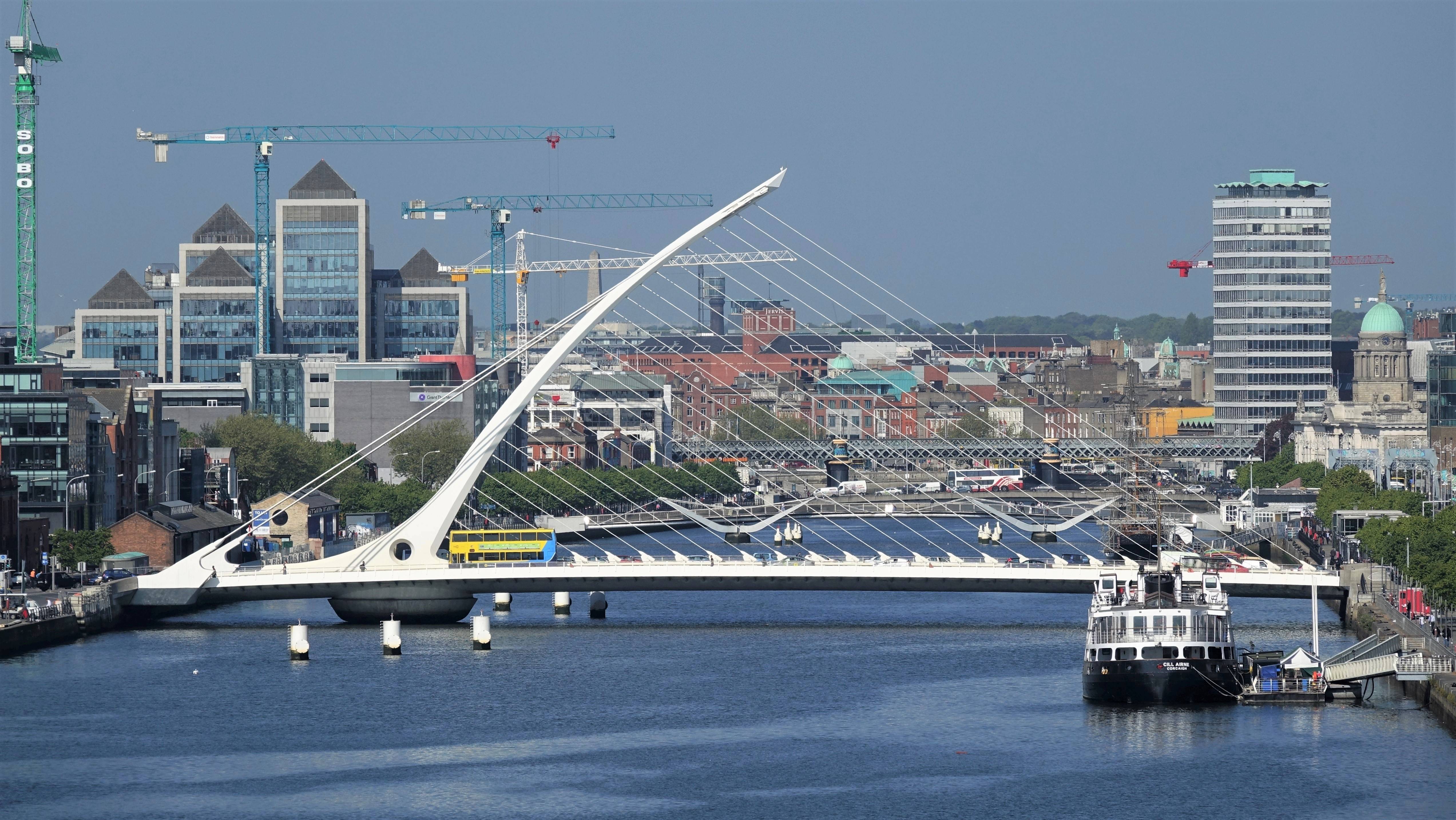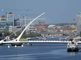 Die zweite Brücke, die die Liffey überspannt, ist die „Samuel Beckett Bridge“, eine 48 Meter hohe Schrägseilkonstruktion, die an eine liegende Harfe erinnert. Die Harfe ist ein bekanntes Wahrzeichen Irlands und ist auch auf der Euro Münze zu finden. Durch die Asymmetrie der Brücke kann sie auf einem Fundament gelagert werden und ist um 90 Grad schwenkbar, so dass genügend Platz für durchfahrende Schiffe bleibt.
