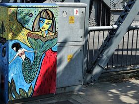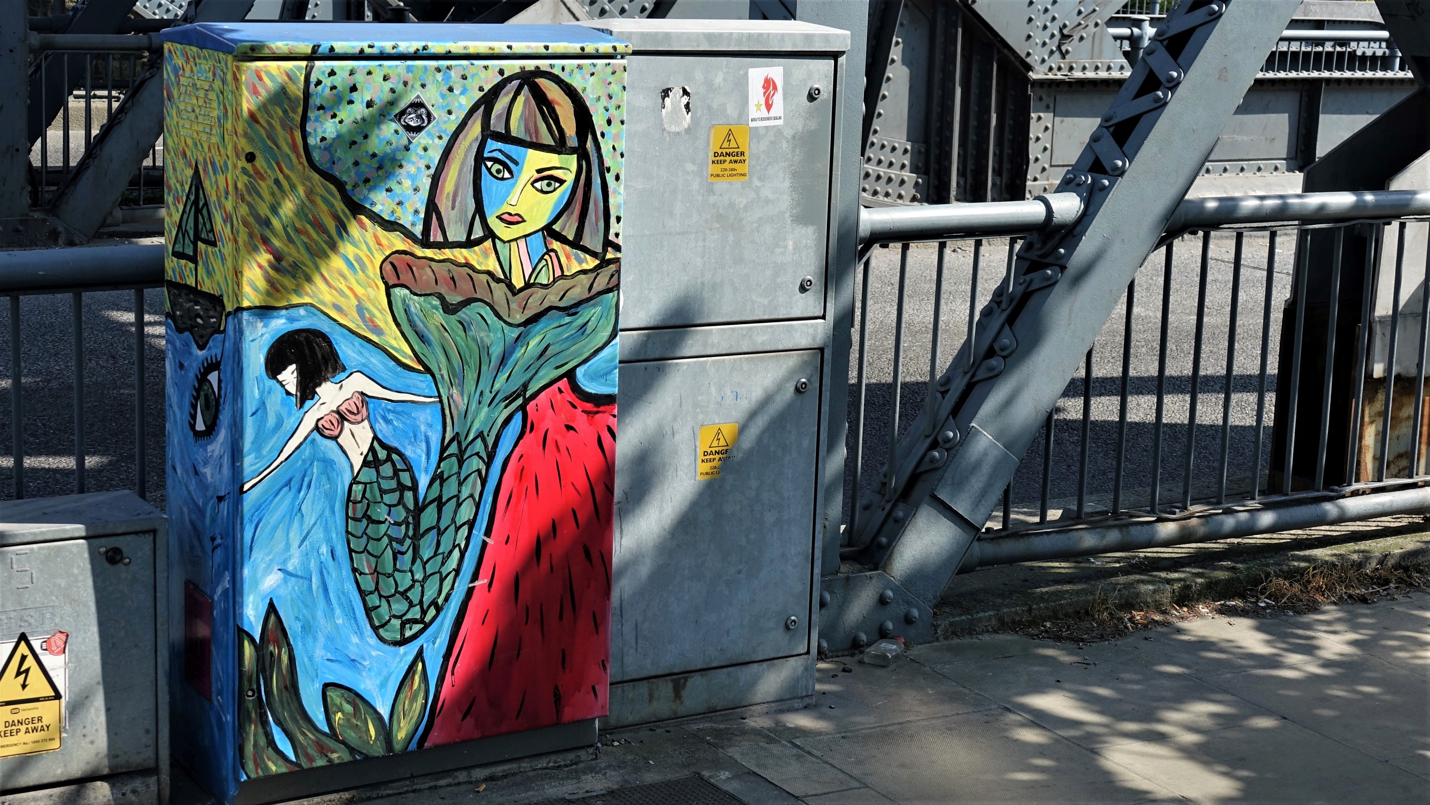 Interessant ist auch ein Graffiti, das einen Stromkasten ziert.