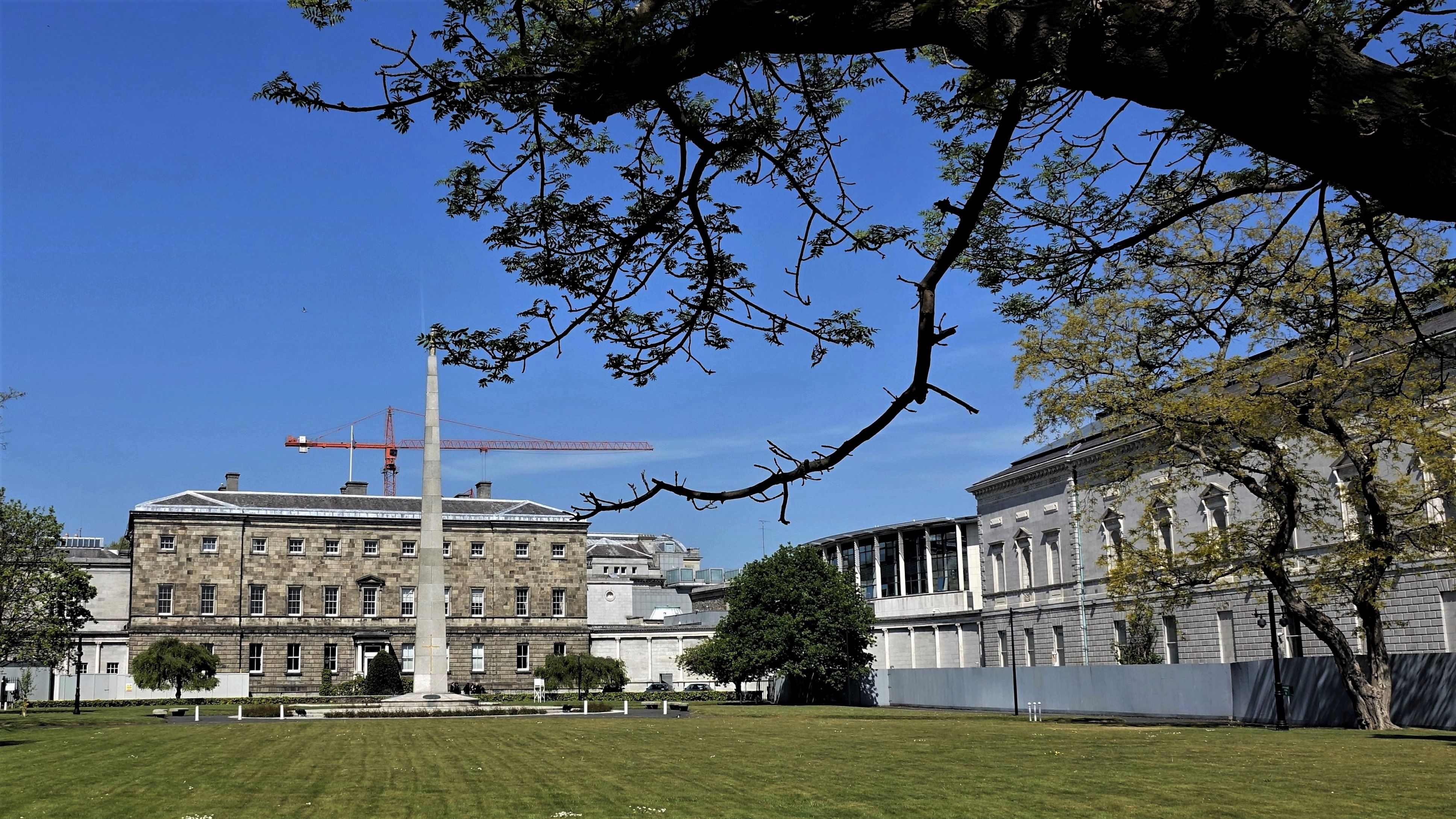 Das „Leinster House“ am Merrion Square ist der ehemalige Herzogspalast des Earl of Kildare, der es als offizielle Stadtresidenz ganz bewusst auf der „einfacheren“ Südseite in den Jahren 1745 bis 1748 bauen ließ. In den folgenden Jahrzehnten wurde dieses Areal um den Merrion Square im sogenannten „Georgian Style“ bevorzugte Wohngegend der Aristokraten, die ihre auf der Nordseite der Liffey gelegenen Häuser verkauften. Aber kein anderes Gebäude konnte bezüglich Größe und Ausstattung mithalten. Bis 1922 war das „Leister House“ Treffpunkt der Royal Dublin Society. Ab 1922 tagt hier das Parlament zunächst des Irischen Freistaates und dann der Irischen Republik. Ende des 19. Jh. wurden zwei neue Flügel für die Nationalbibliothek und das Nationalmuseum angebaut, wo sie sich noch heute befinden, aber nicht mit dem Regierungskomplex verbunden sind.