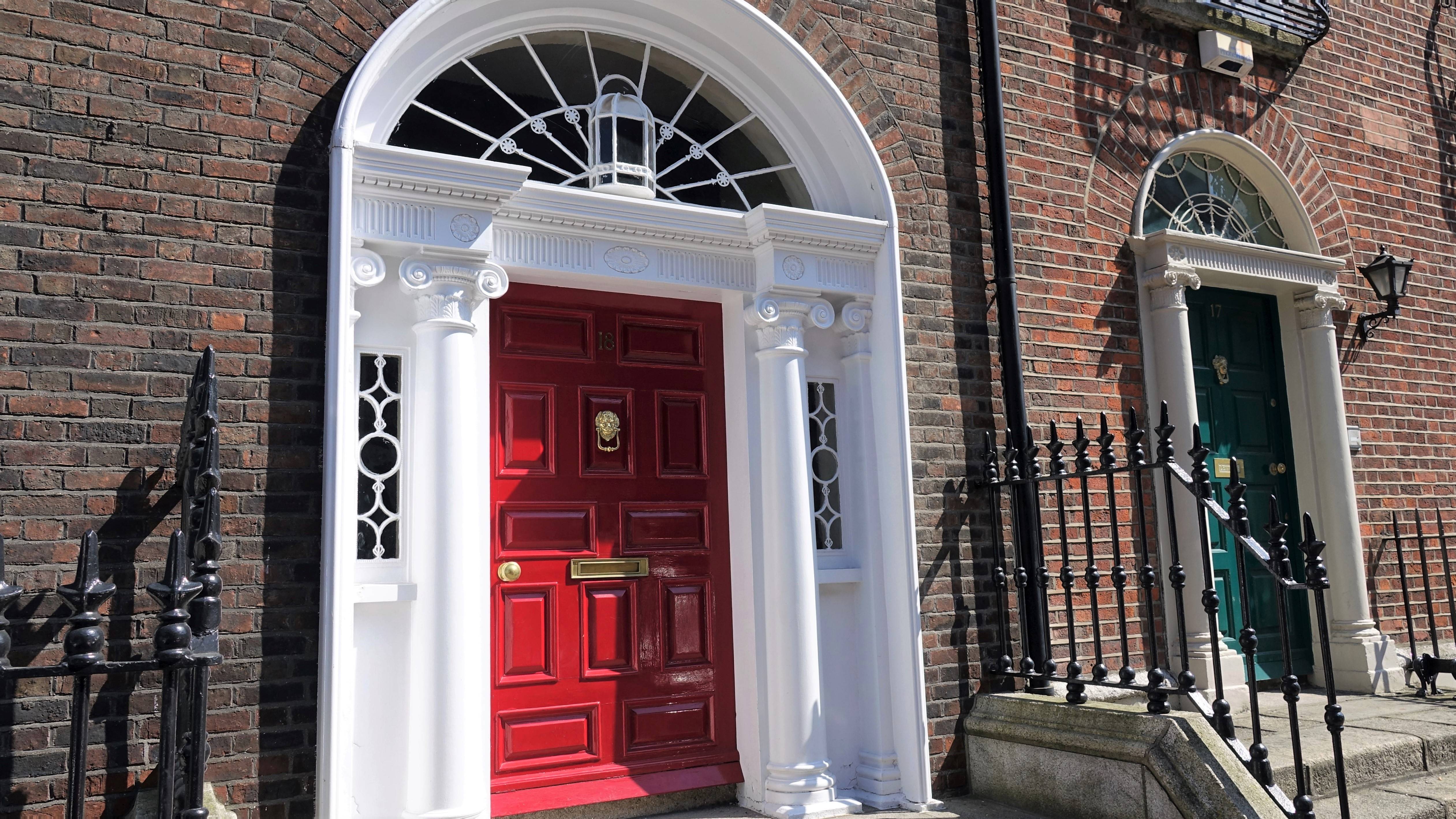 Wir biegen nach rechts in Richtung „St. Stephen’s Green“ ab. Hier gibt es einige Häuser im typischen georgianischen Stil mit sehr schönen und farbenprächtigen Türen.