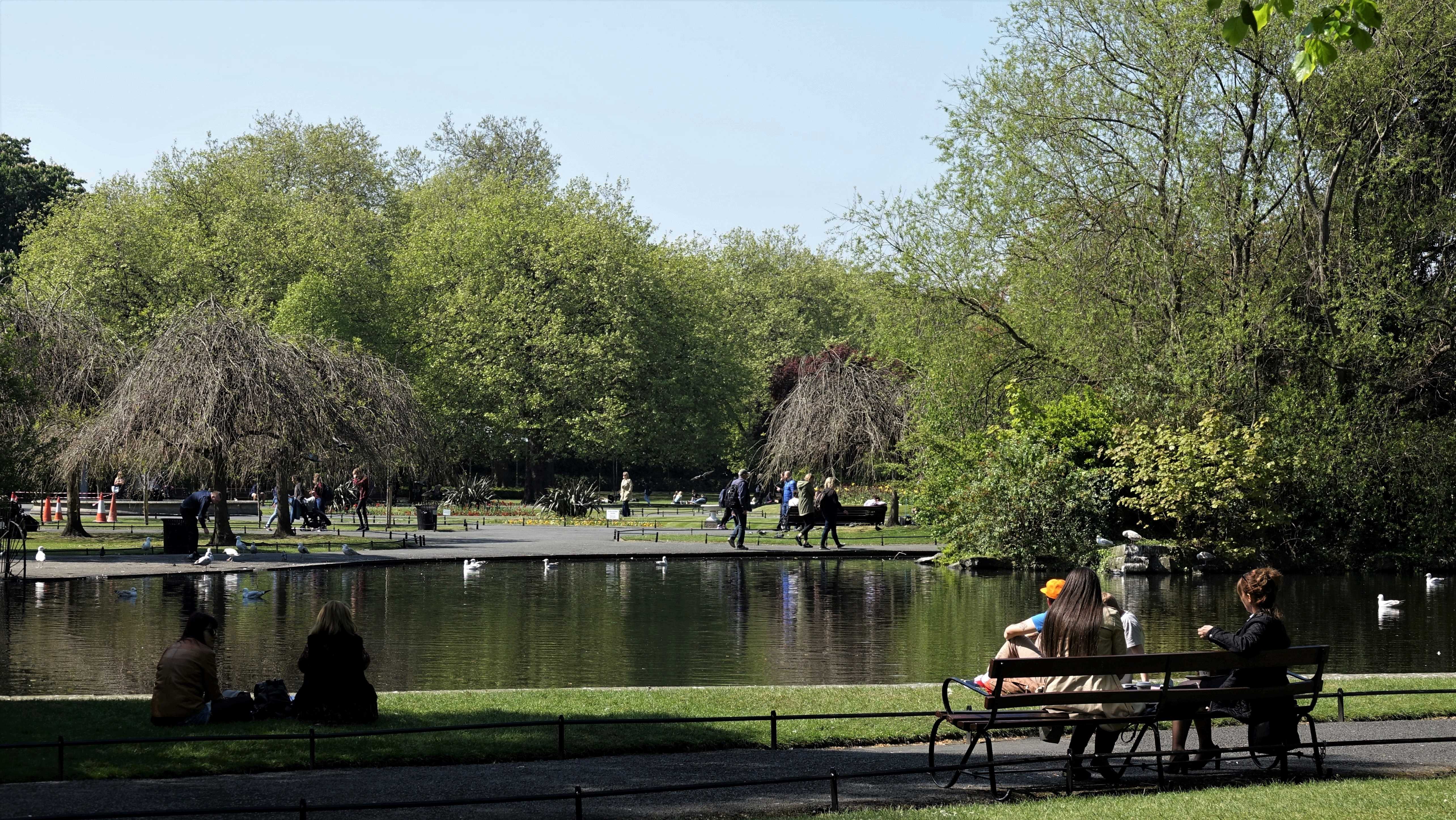 Den neun Hektar großen Landschaftspark „St. Stephen’s Green“ mit seinem schön anlegten See durchstreifen wir an seiner Nordseite. Viele Dubliner genießen hier in dieser grünen Lunge der Stadt ihre Mittagspause.