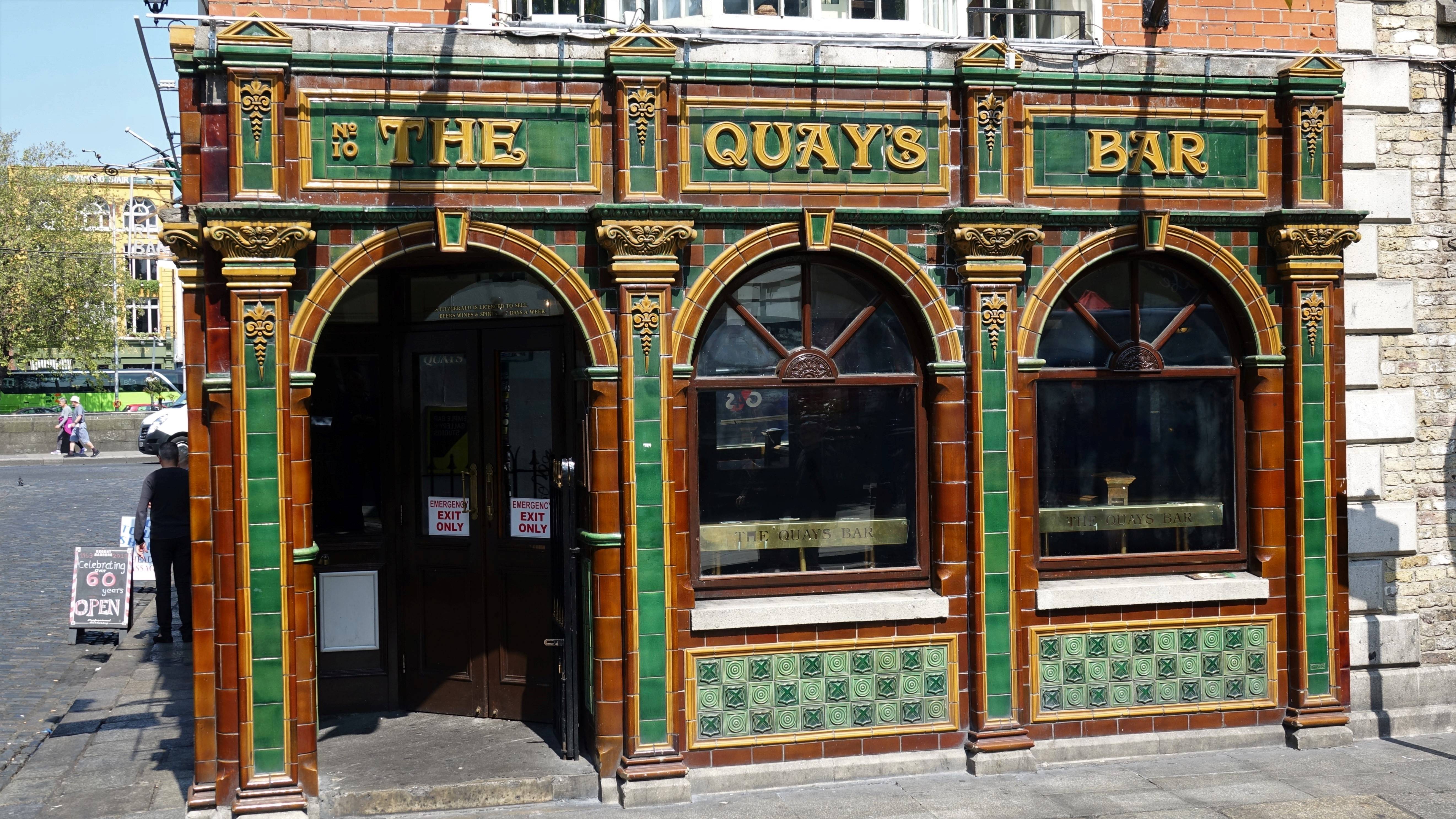 Nach unserer schöpferischen Pause folgen wir der Grafton Street und landen automatisch im Stadtteil „Temple Bar“ mit der gleichnamigen legendären Bar. Bevor wir hier unseren Pflichtstopp einlegen, durchstreifen wir das mittelalterliche Quartier mit seinen kopfsteingepflasterten Gassen kreuz und quer und entdecken viele schöne Pubs. Auch von innen sind diese Kulturstätten sehr sehenswert. Na ja, was soll ich sagen, nach so viel Kultur haben wir uns unsere Belohnung redlich verdient: ein Pint of 13 Hop House Lager. Und weil wir einen so schönen Platz im halbüberdachten Innenhof inne haben, gibt es auch noch zweites Pint. Das Leben kann so schön sein.