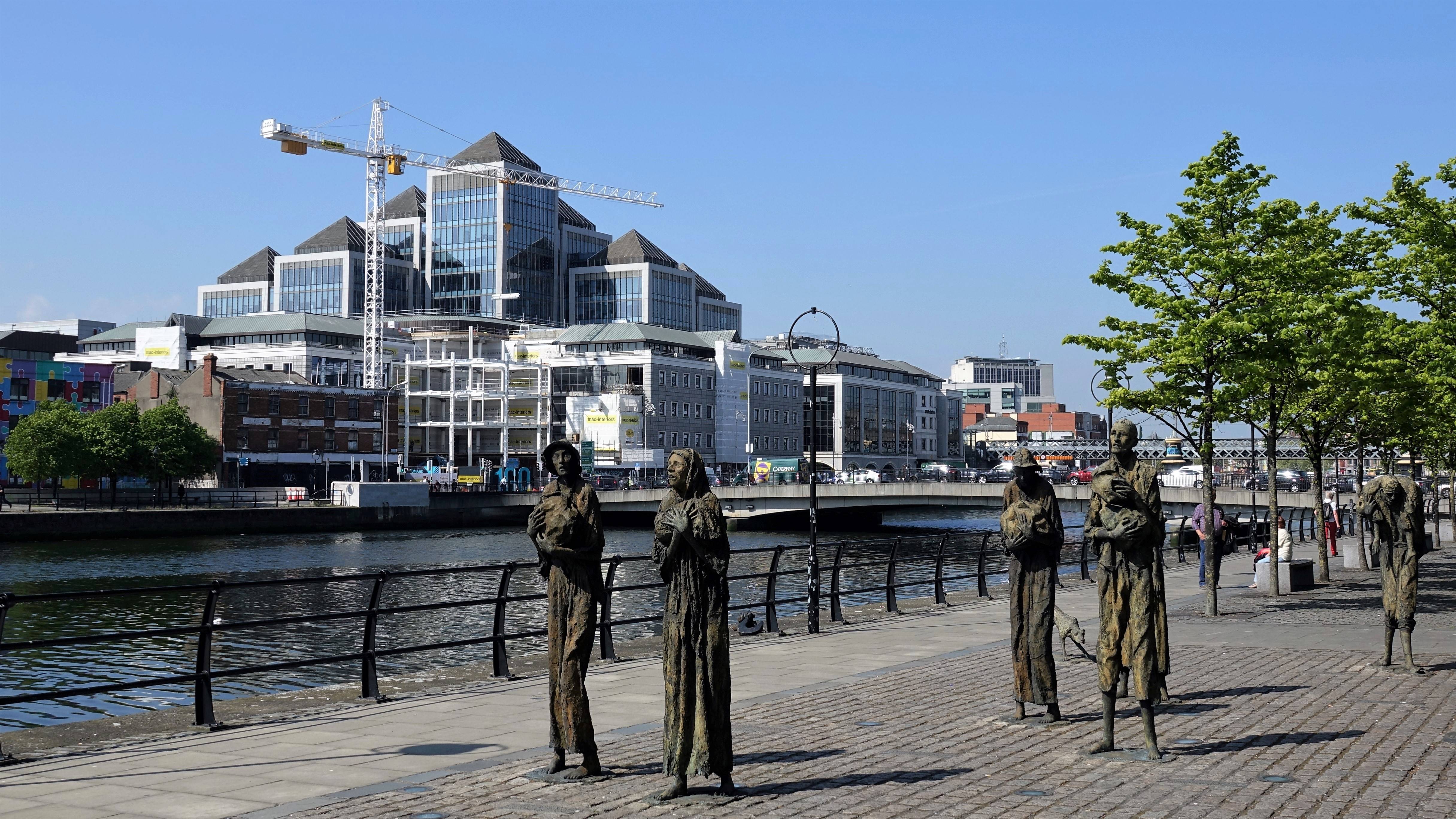 Als Nächstes sehen wir das „Famine Memorial“, das 1997 zum Gedenken an die große Hungersnot errichtet wurde. Aufgrund mehrerer Kartoffelmissernten flüchteten immer mehr Landbewohner in die Hauptstadt. Die Hungersnot hatte verheerende Folgen für Irland, führte zum Tod ca. einer Million Iren und zu Auswanderung einer weiteren Million.