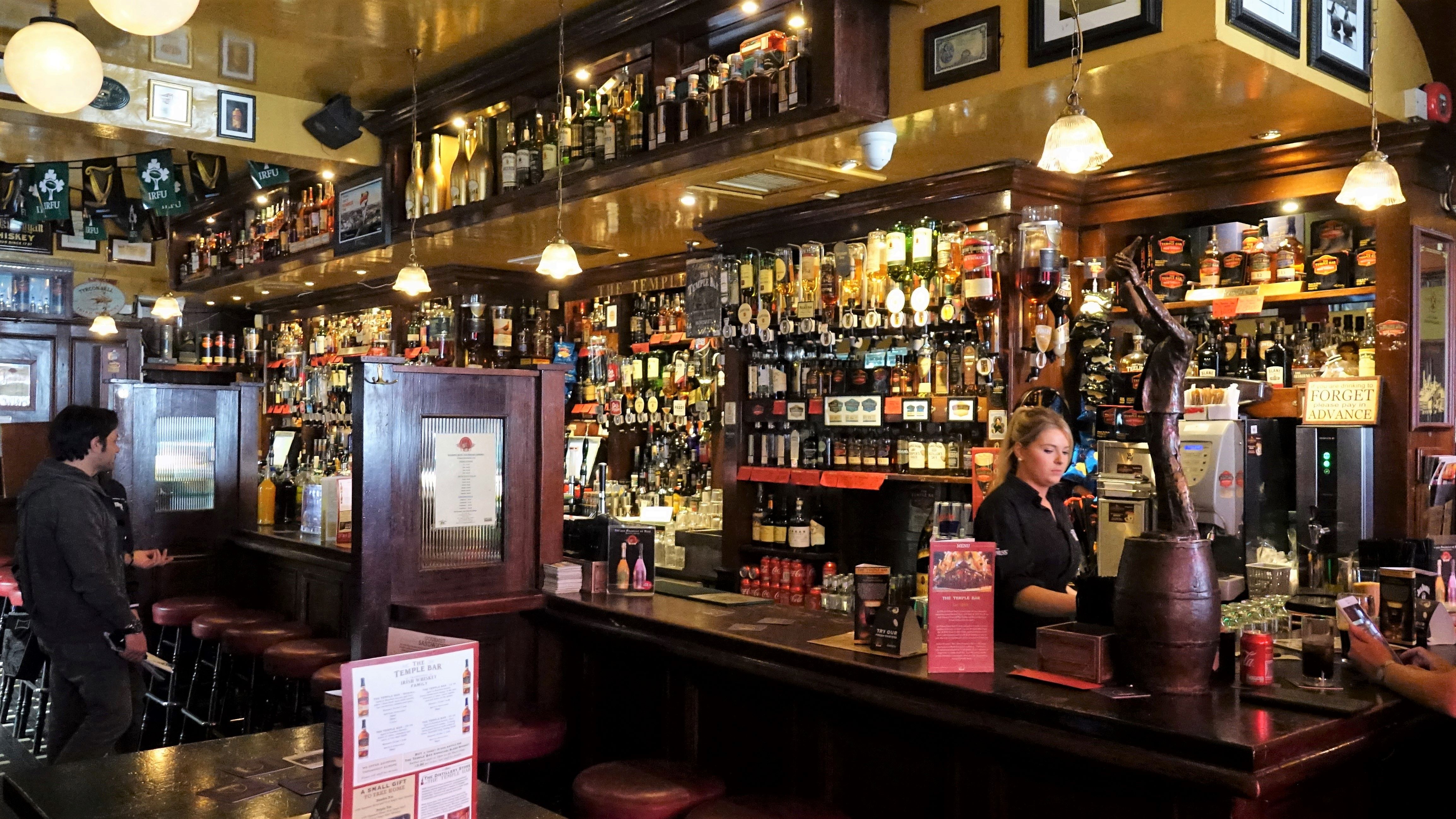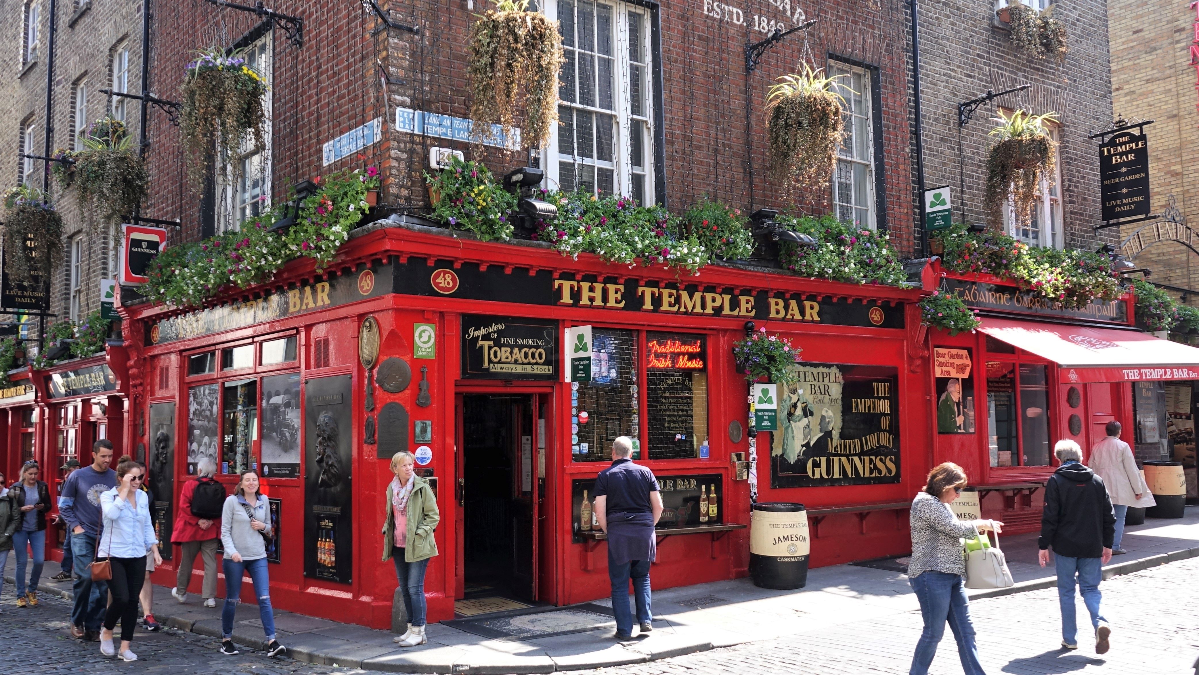 Nach unserer schöpferischen Pause folgen wir der Grafton Street und landen automatisch im Stadtteil „Temple Bar“ mit der gleichnamigen legendären Bar. Bevor wir hier unseren Pflichtstopp einlegen, durchstreifen wir das mittelalterliche Quartier mit seinen kopfsteingepflasterten Gassen kreuz und quer und entdecken viele schöne Pubs. Auch von innen sind diese Kulturstätten sehr sehenswert. Na ja, was soll ich sagen, nach so viel Kultur haben wir uns unsere Belohnung redlich verdient: ein Pint of 13 Hop House Lager. Und weil wir einen so schönen Platz im halbüberdachten Innenhof inne haben, gibt es auch noch zweites Pint. Das Leben kann so schön sein.