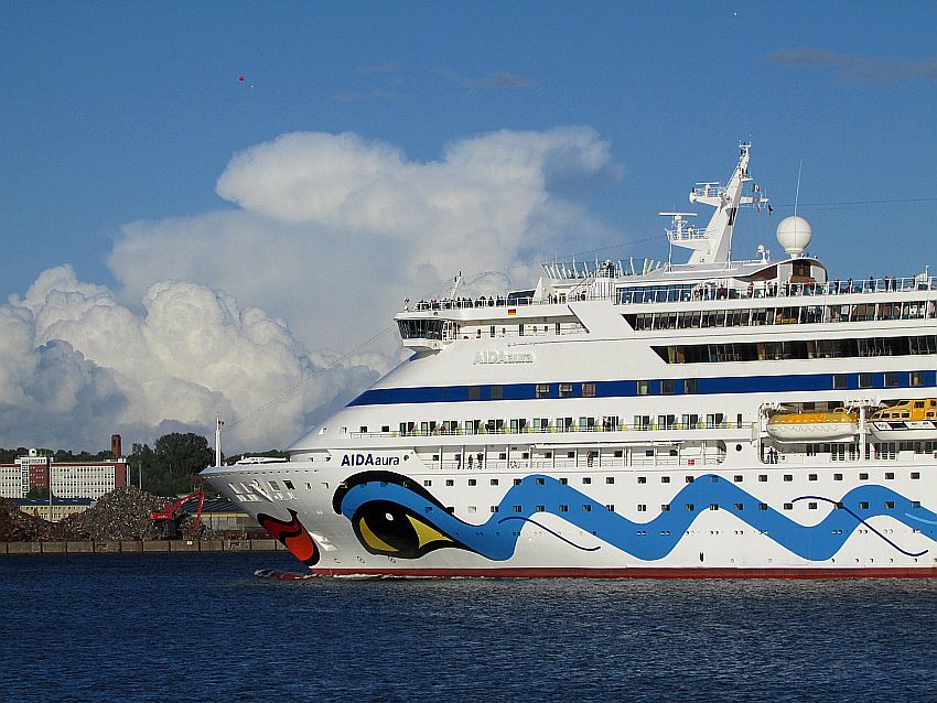 Eine Reise nach Spitzbergen, eine absolute Traumreise für das Paar, erlebte sie mit ihrem Mann an Bord von AIDAaura. Etliche weitere Reisen folgten. Doch nunmehr soll es keine gemeinsamen Erlebnisse mehr geben, denn ihr Mann ist an dieser verdammten Krankheit Krebs gestorben. Seitdem kommt sie, so oft es, hierher, um wenigstens den AIDA-Schiffen hinterherwinken zu können. Sie wohnt nicht so weit weg, steigt an schönen Tagen in den Zug und fährt in die Landeshauptstadt, um hier von der Kiellinie aus ihren Gruß an die ablegenden Kussmundschiffe zu schicken. Sie vermisst diese schönen Zeiten mit ihrem Mann an Bord sehr. Doch niemals hätte sie den Mut, so wie ich allein ein Kussmundschiff zu betreten.