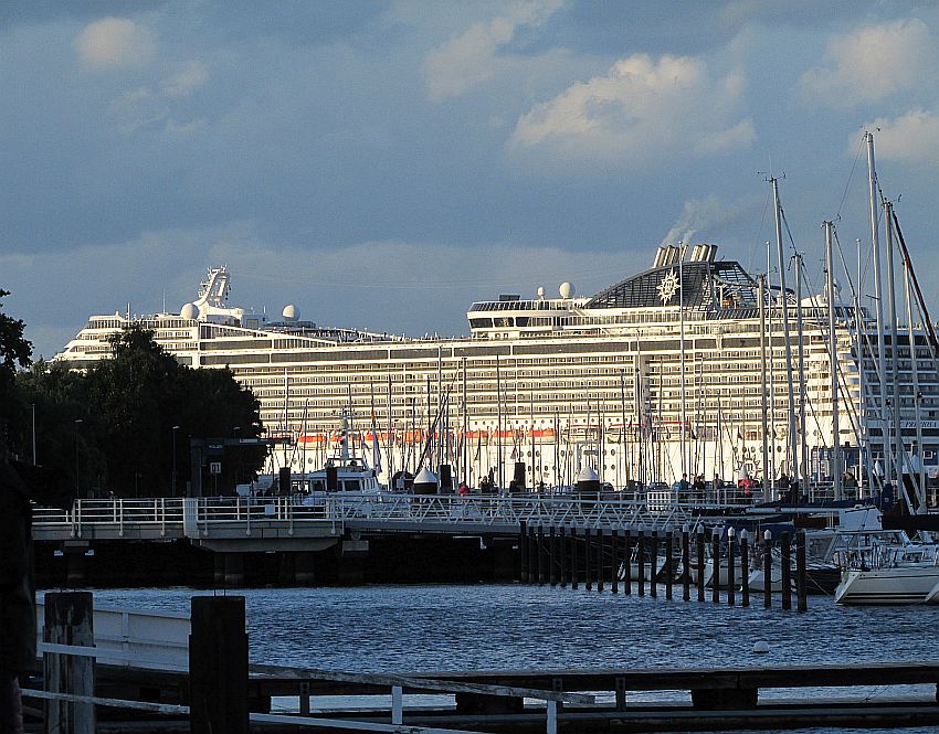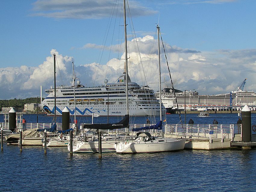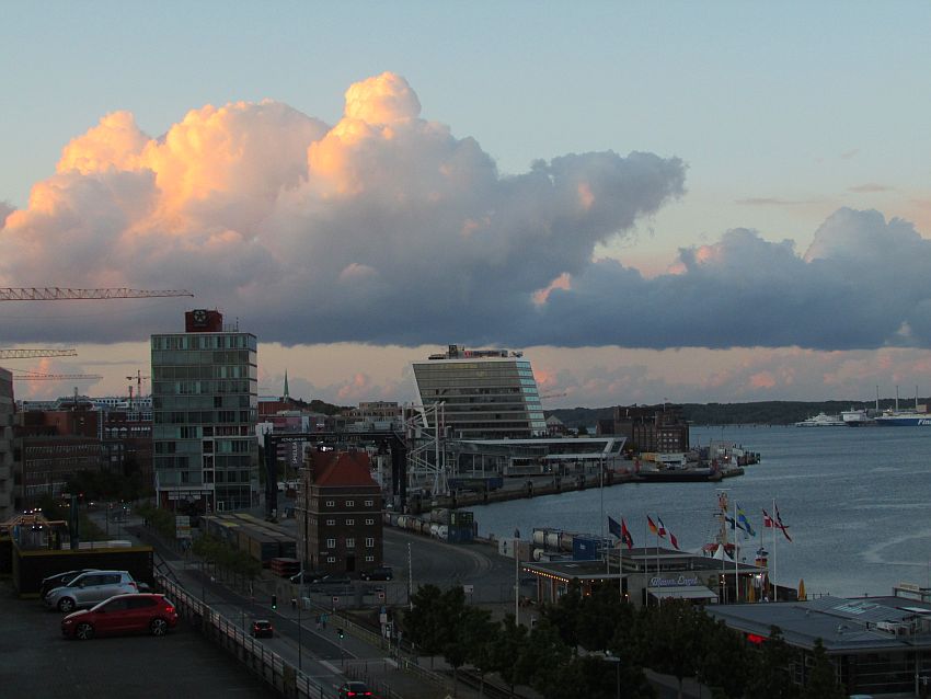 Dämmerung und Abendfrieden senken sich über Kiel. Satt und zufrieden bin ich, mit meinen Gedanken jedoch nach wie vor bei meiner Bekanntschaft von heute Abend und natürlich bei "meiner" AIDAluna, die sich mit jeder Seemeile erneut meinem geliebten Norwegen nähert (… ohne mich … Leider …)