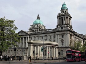 Wir haben heute aber ein anderes Ziel. Gemeinsam mit A&O nehmen wir nach dem Frühstück den Shuttle, der uns in der Innenstadt am Donegall Square absetzt. Das markanteste Gebäude ist hier das mächtige Rathaus aus dem Jahre 1906. Belfast ist Nordirlands Hauptstadt und ist mit 342.000 Einwohnern die zweitgrößte Stadt der irischen Insel.