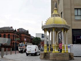 Nachdem wir den Markt verlassen haben, laufen wir auf der Victoria Street nordwärts, vorbei an den „Royal Courts of Justice“, die zwischen 1928 und 1933 bewusst in einem traditionellen Architekturstil erbaut wurden, um die Würde des Gesetzes widerzuspiegeln. Ein Stückchen weiter am Victoria Square, erreichen wir die „Bittles Bar“, eine urige Kneipe mit dreieckigen Barraum. Aber auch für ein Bier ist es noch zu früh.