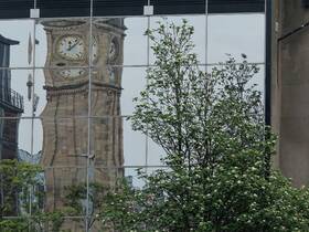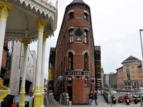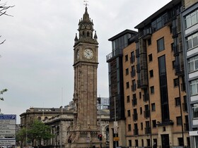 Wir folgen der Victoria Street bis zur Ecke High Street, wo auf der anderen Seite am Queen’s Square die „Albert Memorial Clock“ steht, Belfasts Antwort auf den „Schiefen Turm von Pisa“. Die Turmuhr wurde 1865 zu Ehren von Prinz Albert, dem verstorbenen Prinzgemahl der damaligen englischen König Victoria, errichtet, leider aber auf trockengelegtem Marschland, so dass sich der Turm auf dem wenig stabilen Untergrund immer mehr neigte und schließlich um mehr als einen Meter von der Lotrechten abwich. 2002 wurde die Uhr renoviert und die Neigung gestoppt.