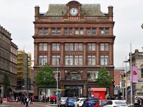Wir biegen ab in die High Street, die in den Castle Place übergeht, wo an der Ecke zum Donegall Place das imposante Gebäude „The Bank Buildings“ steht. Leider ist mein Bild vom 12. Mai 2017 ein historisches Foto, da das Gebäude am 28. August 2018 im Rahmen von Renovierungsarbeiten ziemlich stark zerstört werden wird. Die Wiederaufbauarbeiten werden noch bis mindestens 2022 andauern.