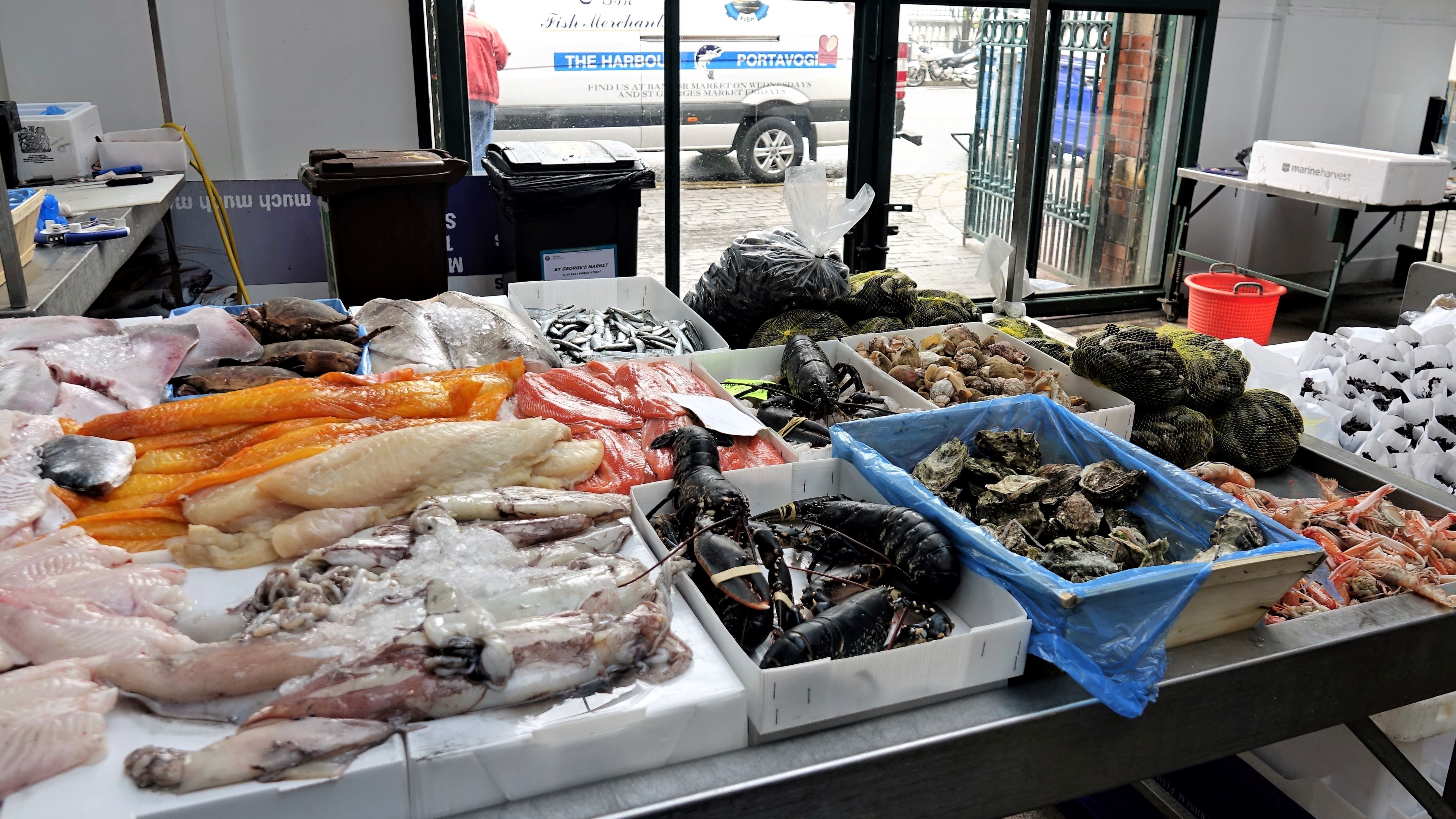 Es ist Freitag, so um die frühe Mittagszeit, und der gemischte Markt ist recht gut besucht. Man findet Stände mit Obst und Gemüse aus der Region, mit frischem Fisch, Muscheln und anderem Getier, mit eingelegten Leckereien, mit verführerisch gut riechenden Backwaren, mit selbstgemachten Marmeladen und Chutneys, mit bunter Kleinkindermode und mit Büchern, Antiquitäten und anderer Kunst. Außerdem macht ein Barde mit seiner Klampfe ganz nette und unaufgeregte Musik. Eine Erholung für meine Ohren, wenn ich so an unseren DJ an Bord denke.